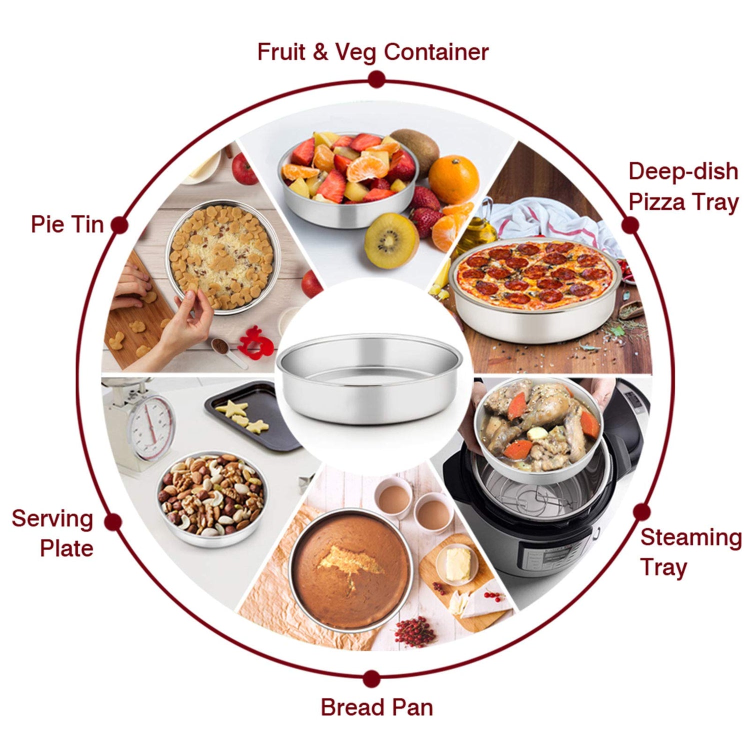 - MULTI-USE - Round cake pan set perfect for baking in the oven, Fit in Pot / Air Fryer to make cake / steam veggies / roast chicken wing, Even efficient as a serving pan for serving salad / fruits