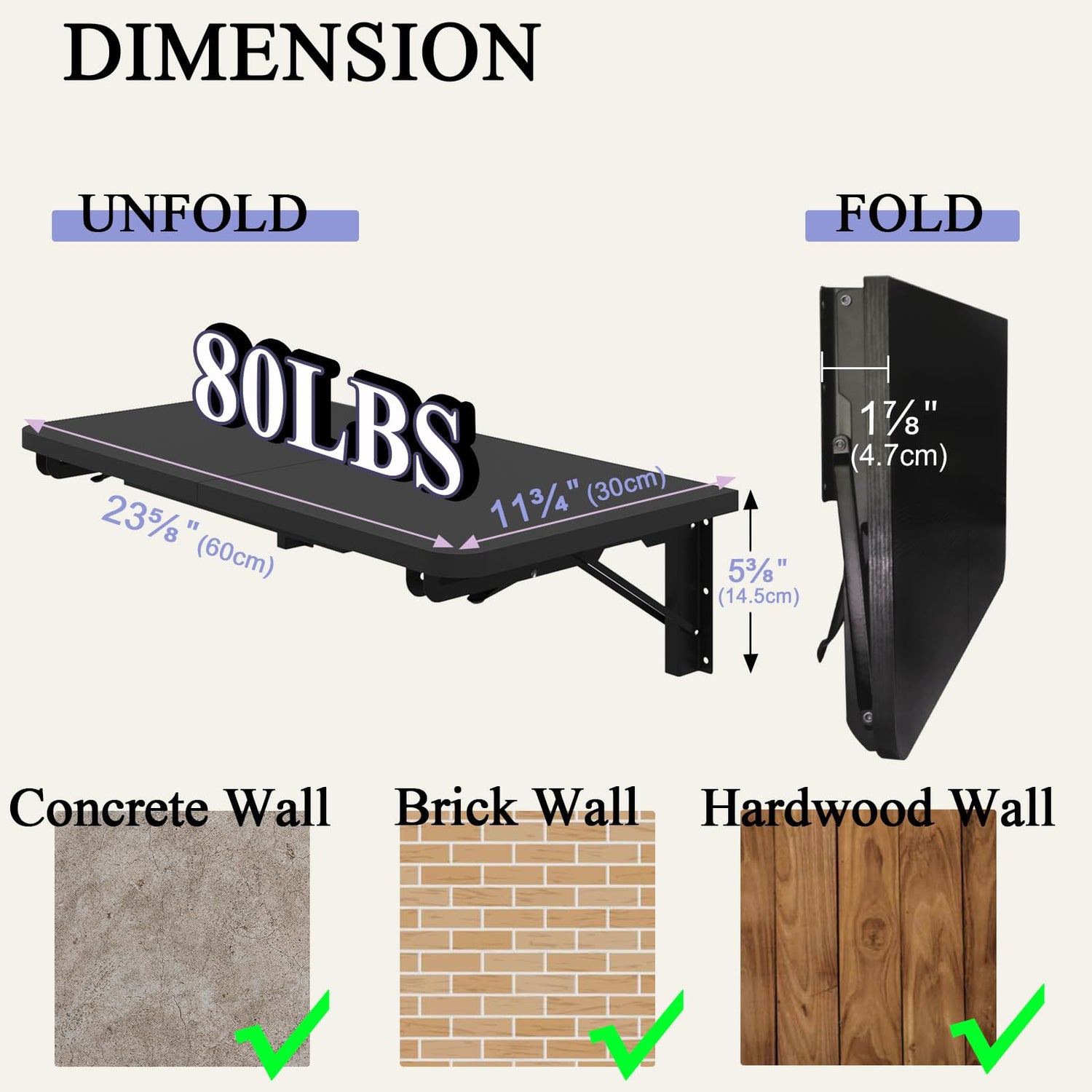 - 【Easy and Convenient to Use】Simply lift up the desk board when you need it, and you'll have a 23.6*11.8-inch workspace. When not in use, fold it down and it's only 1.85 inches thick, saving space.