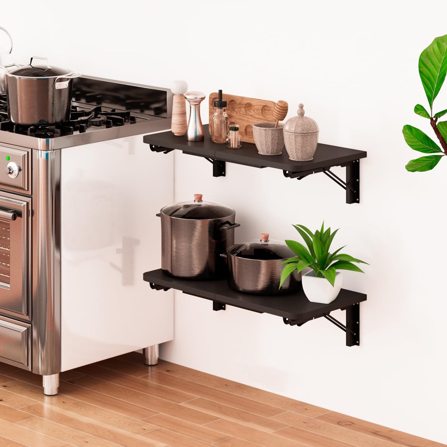 - 【Wall Mounted Shelf】 Add Extra Space to Any Room. Whether it's in your office, bedroom, or living room as a compact workstation, in your kitchen as an extra countertop for cooking and dining, in your laundry room, on your balcony, or even in your camper or RV, this shelf is designed to adapt to your needs.