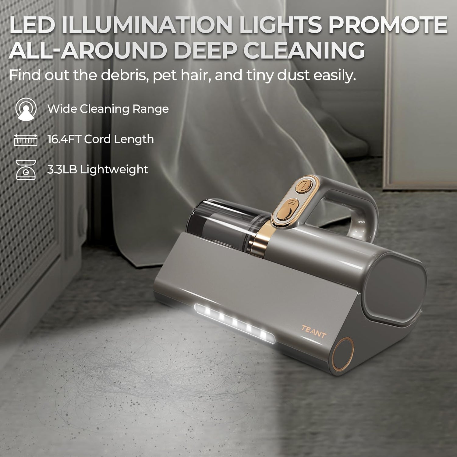 - 【Lightweight and Easy to Use】Teant mattress vacuum cleaner weighs only 3.3 pounds with 16.4ft cord, making it easier and more comfortable for you to enjoy a wide range of cleaning. It also features a one-touch simple operation and disassembly for easy to use. This well-crafted low-noise bed cleaner will become the guardian of your home health, making it a perfect gift for your family.