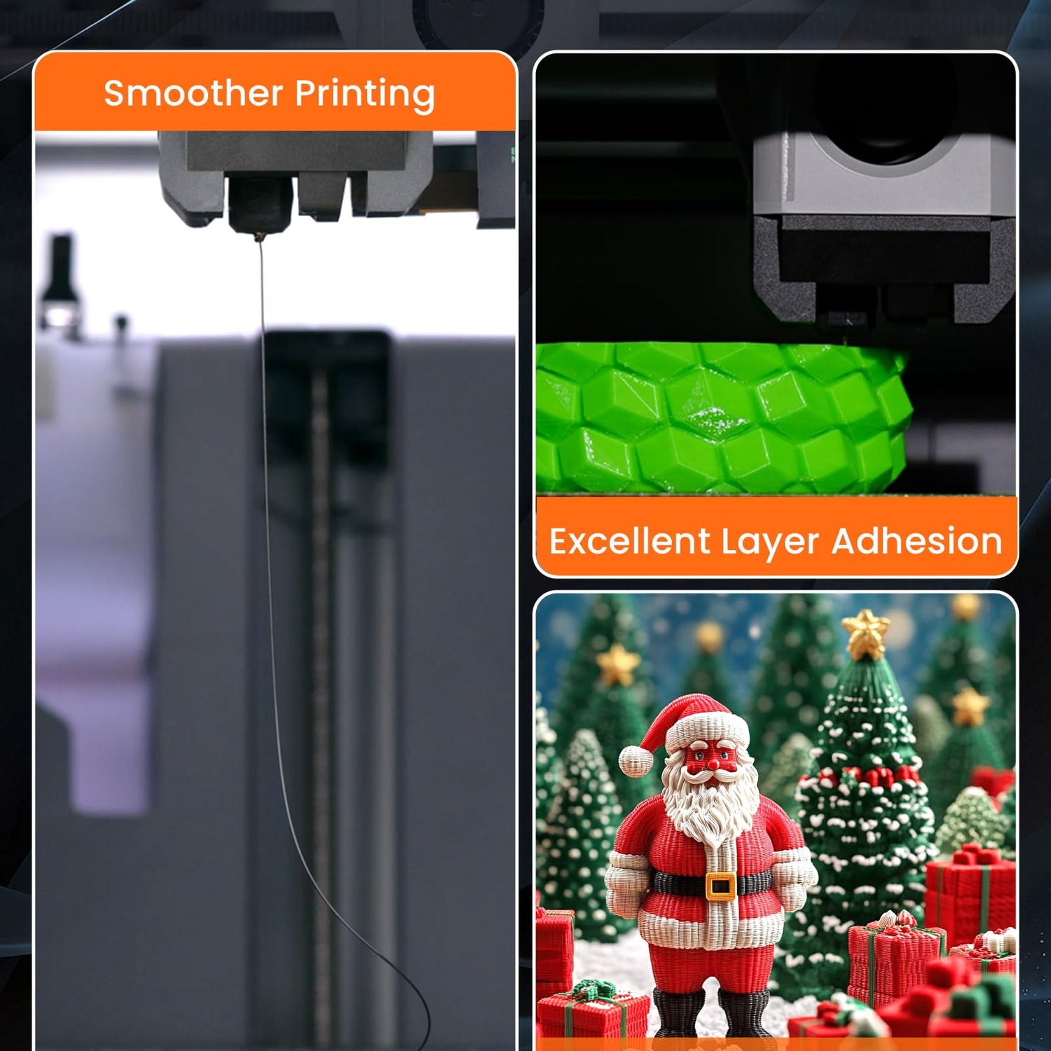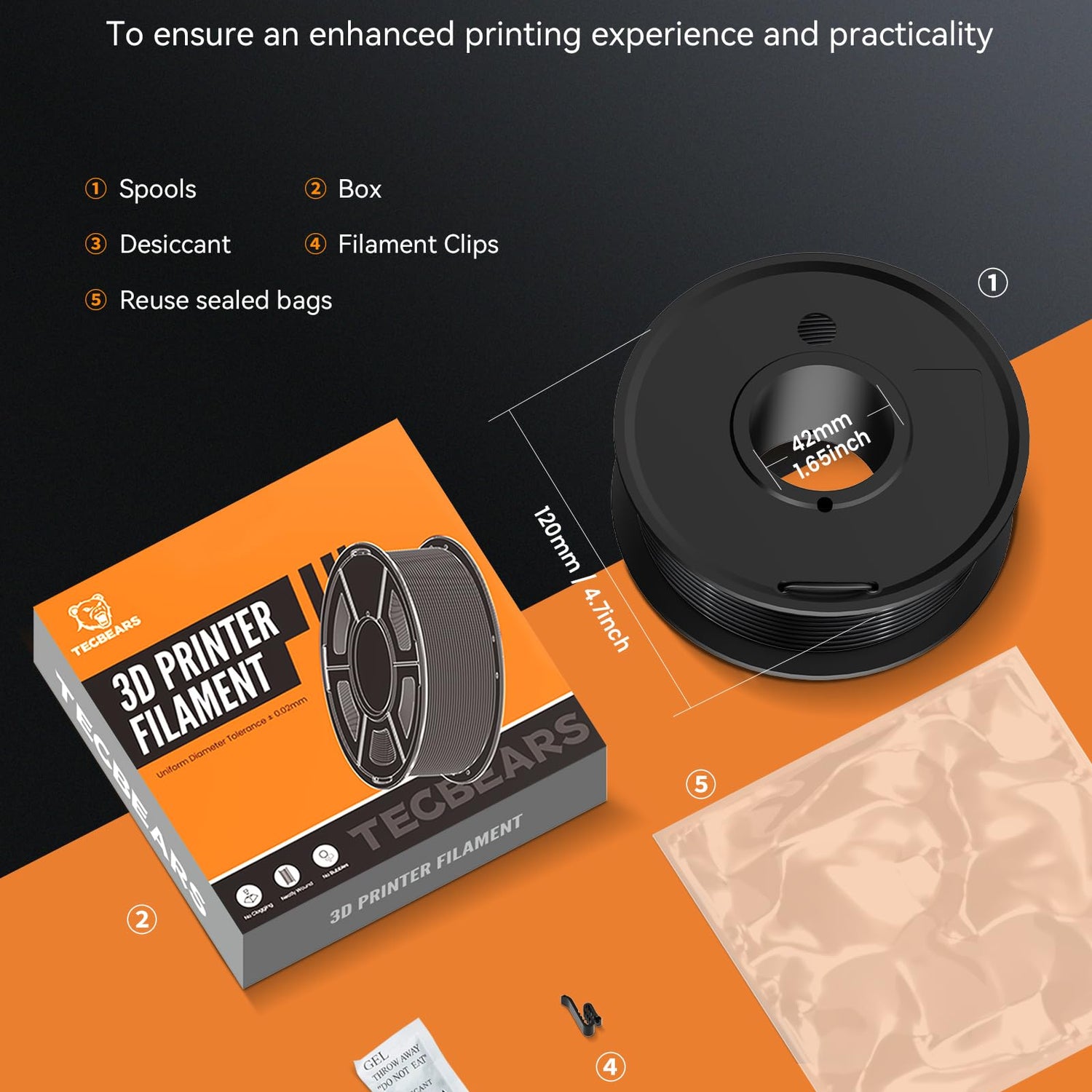 - CLOG-FREE & BUBBLE-FREE - Completely dried for 24 hours before packaging and vacuum sealed with desiccants enable more stable printing. Ideal for crafting Christmas ornaments, Halloween figures, and birthday gifts with Tecbears filament.