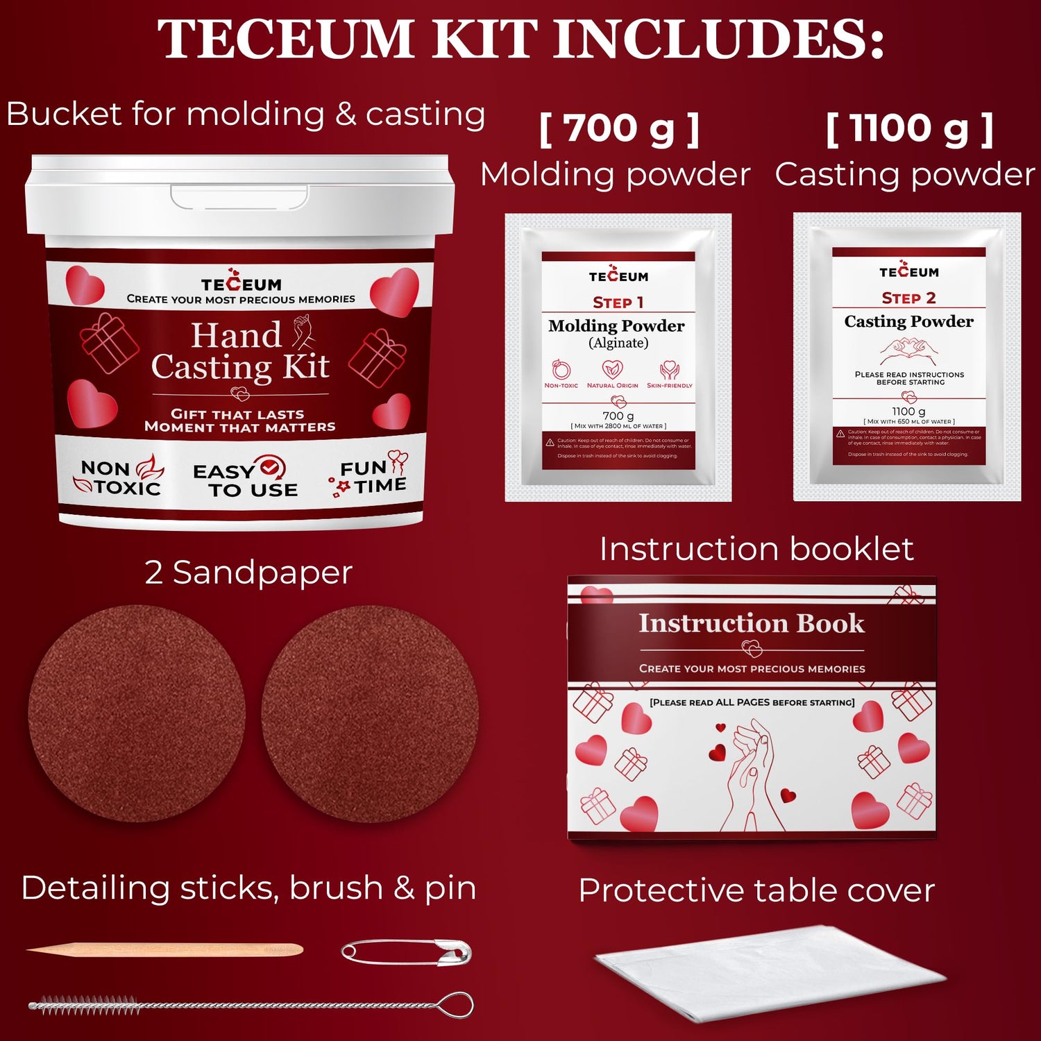 TECEUM Hand Casting Kit β Unique Gift for Babies & Adults β Ideal DIY Gift for Your Loved Ones, Couples, Family β For Wedding, Anniversary, Baby Shower, Motherβs Day, Christmas β Romantic Gifts β Kit1