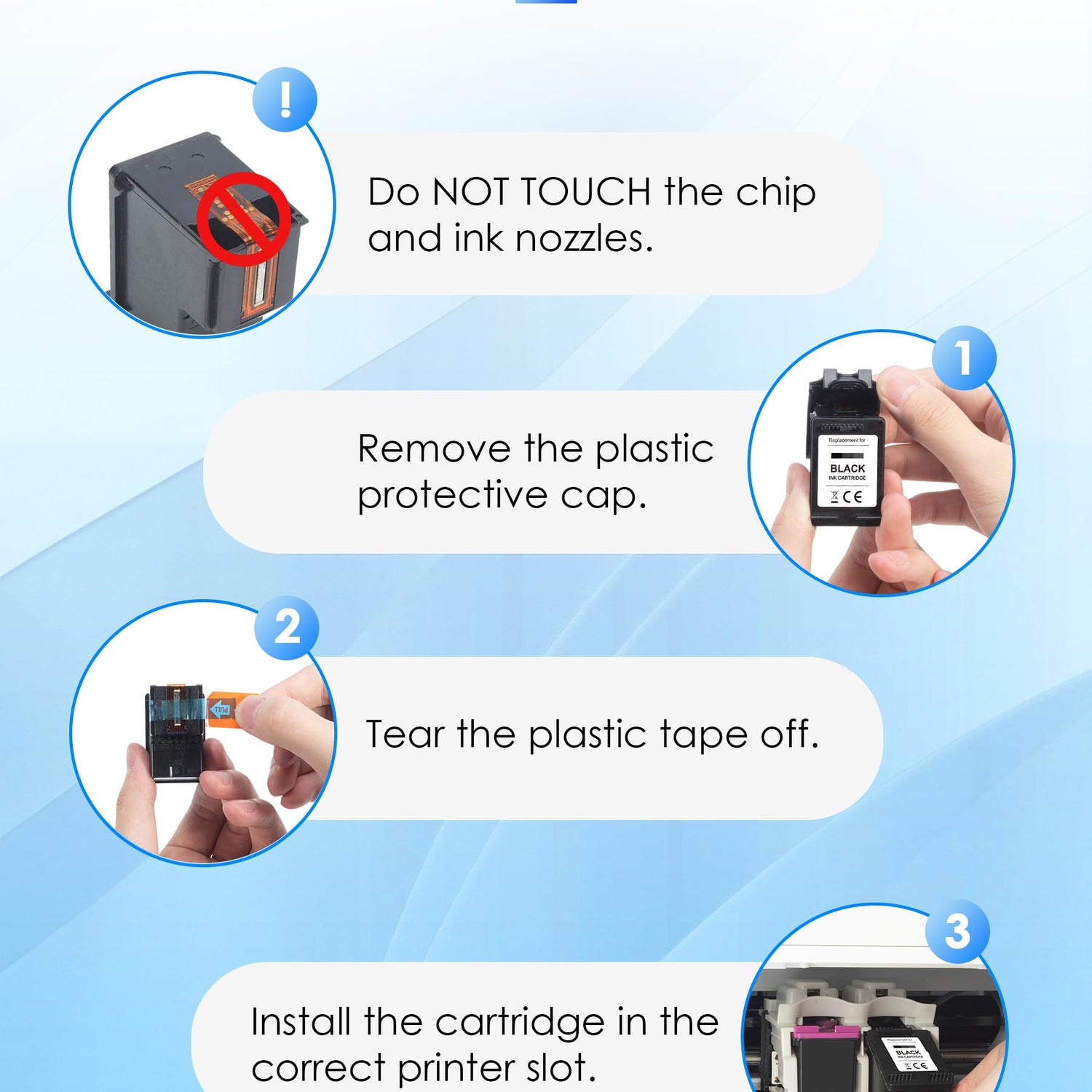 - Note: Please do not touch the chip and ink nozzles