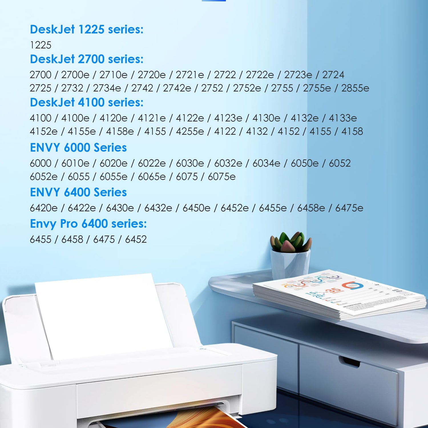 - Compatible with HP DeskJet 4100 serie: 4100 4100e 4120e 4121e 4122e 4123e 4130e 4132e 4133e 4152e 4155e 4158e 4155; DeskJet Plus 4122 4132 4152 4155 4158 4255e