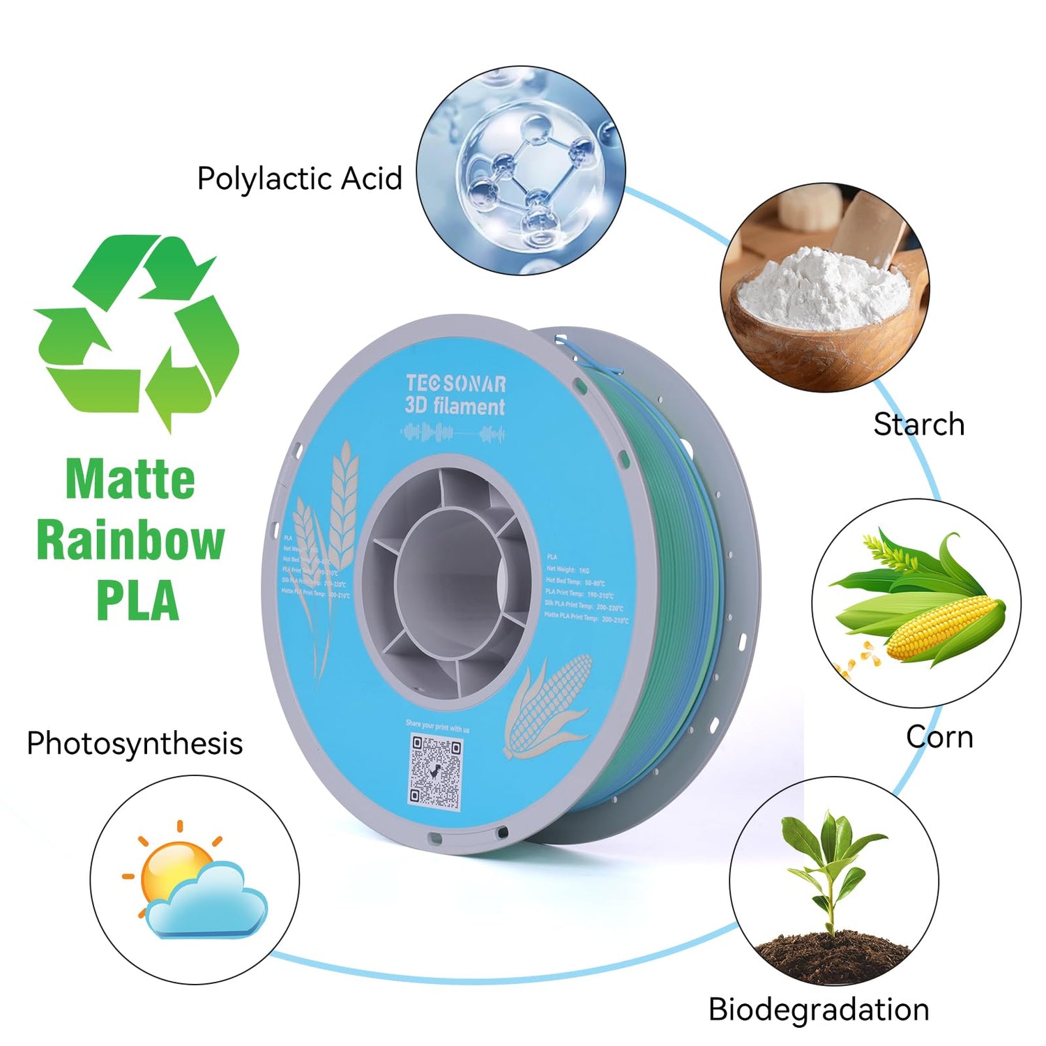 TECSONAR TECSONAR Matte Rainbow PLA 3D Printer Filament, 1KG Spool(2.2lbs) 1.75mm PLA Fast Color Change 3D Printing Material, Multicolor Gradient Filament for Most FDM 3D Printers,Matte Rainbow