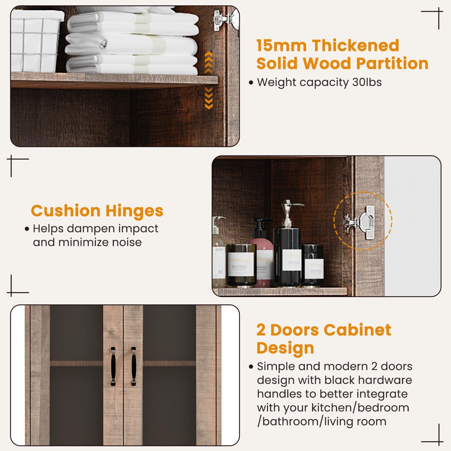 - Versatile Usage: This cabinet isn't just for the kitchen. Its versatile design makes it suitable for use as a floor organizer in the living room, bathroom, dining room, pantry, or utility room. It provides stylish and practical storage solutions for various needs throughout your home