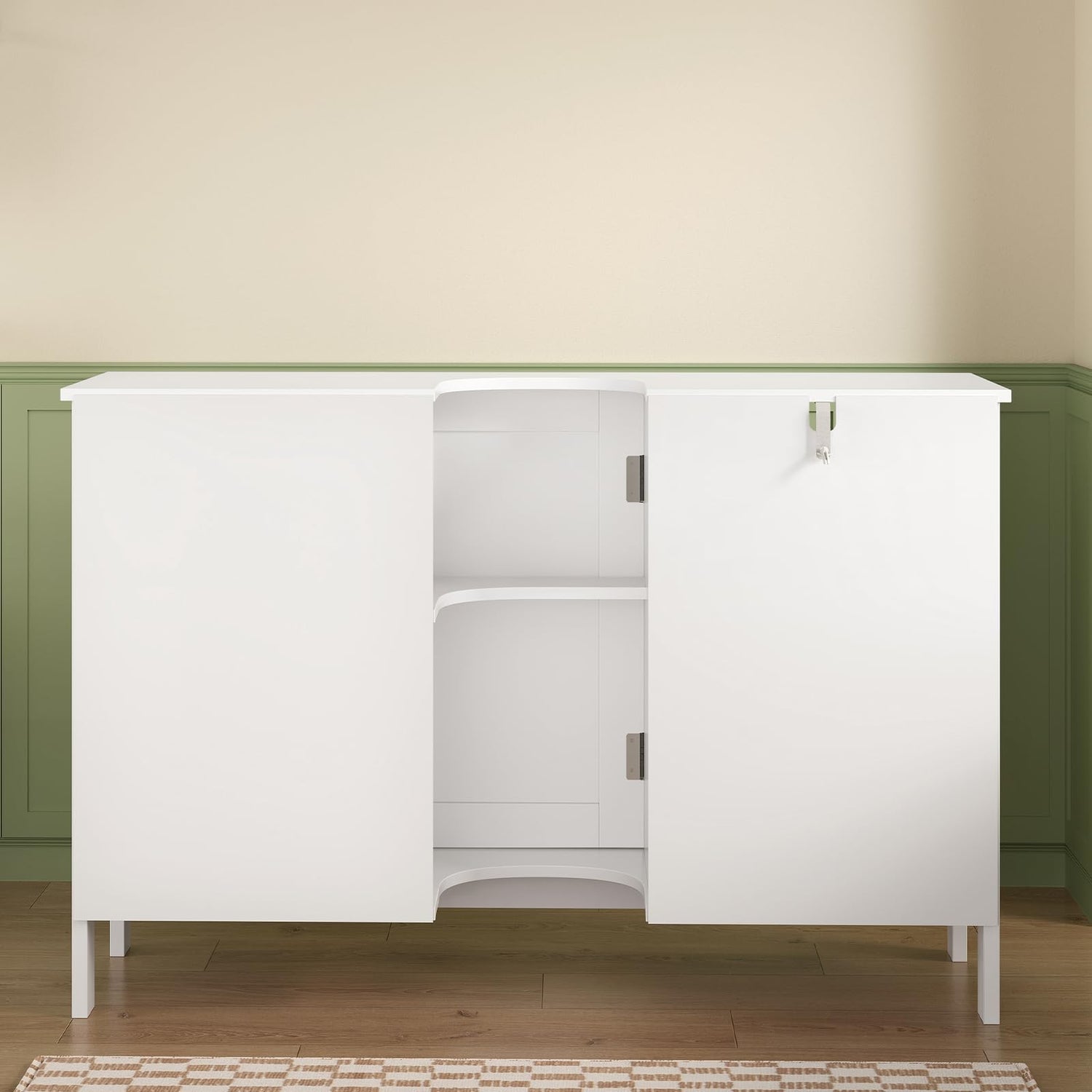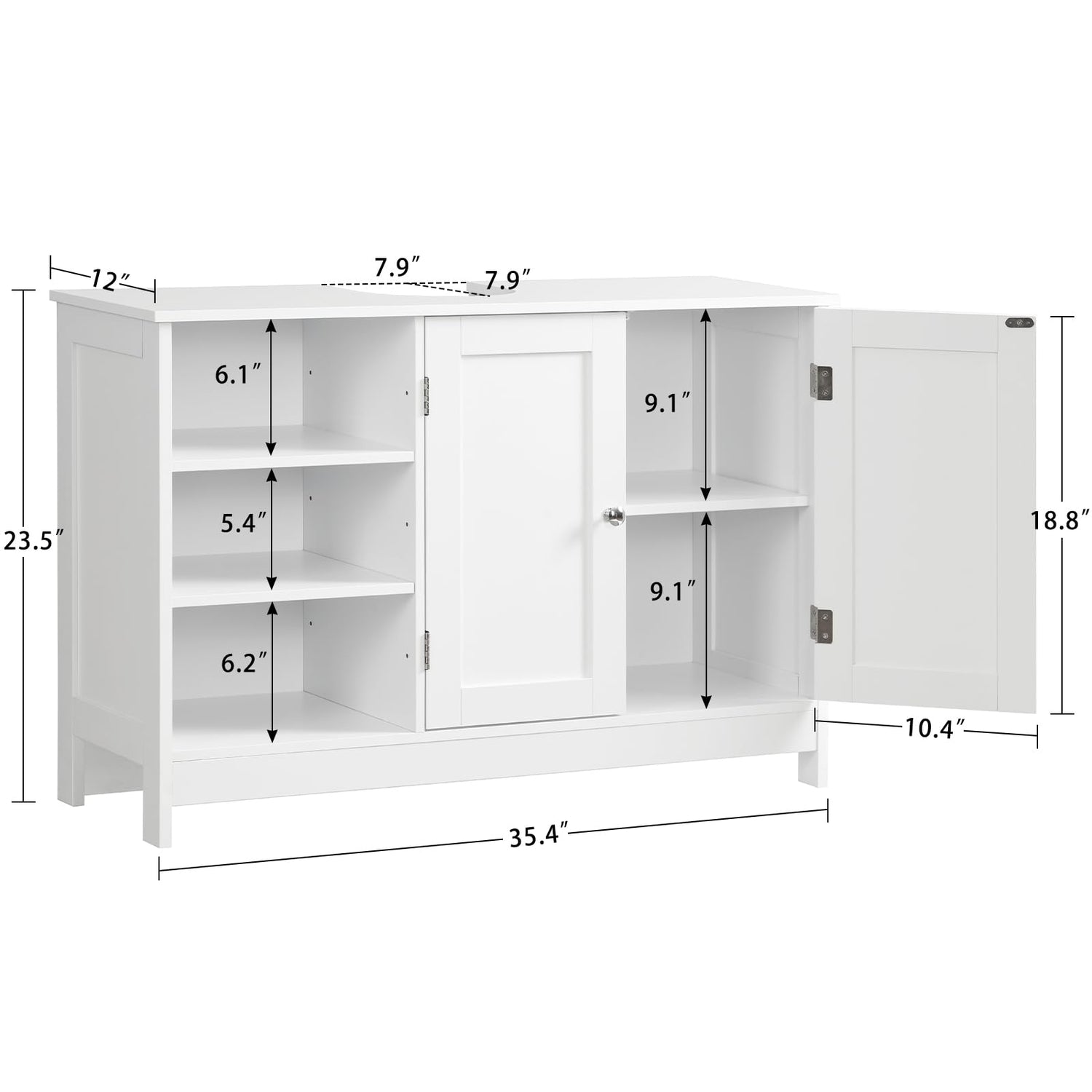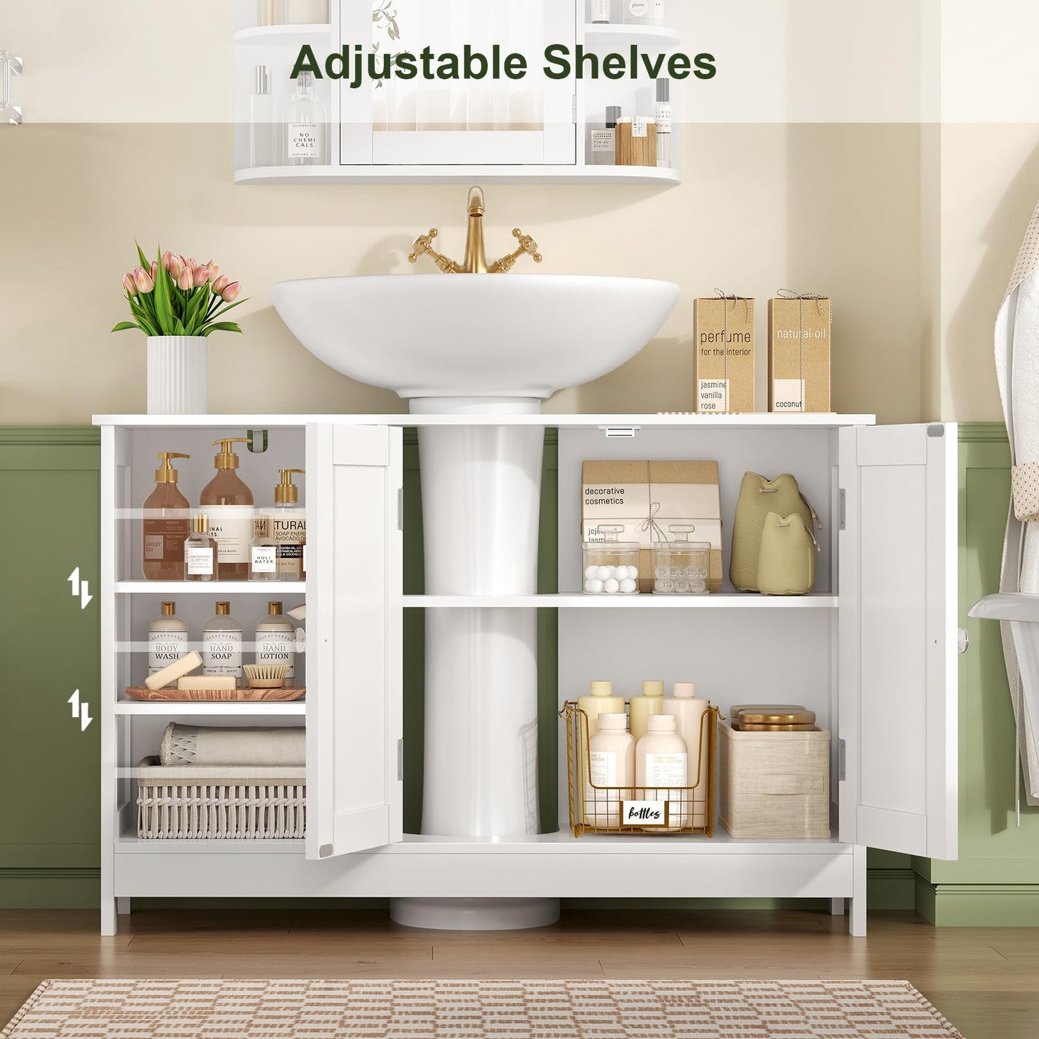 TEENFON 35.4" Pedestal Sink Storage Cabinet with 2 Doors and Adjustable Shelves, Bathroom Sink Cabinet, Under Sink Storage with U-Shape Cut-Out, White