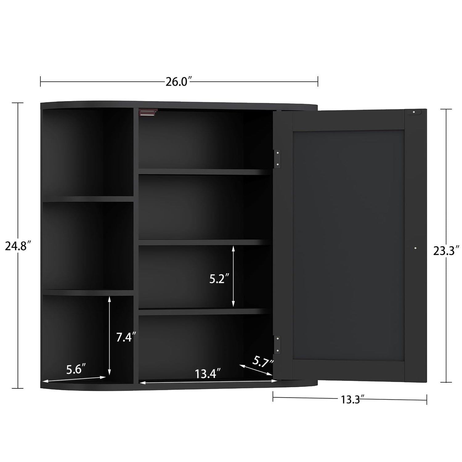 TEENFON Medicine Cabinet Mirror with Door & Adjustable Shelves, Bathroom Medicine Cabinet with Mirror, Medicine Cabinets for Bathroom, Black