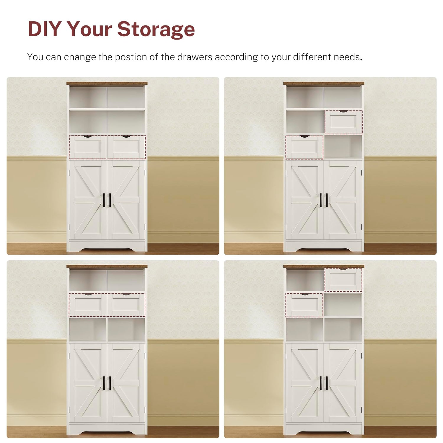• ⭐【Also Home Decro】 This kitchen cabinet features retro wood and barn doors, It will add a charming and farmhouse touch to any dining room or living area. No matter you use it as a storage cabinet, kitchen pantry, bathroom cabinet, bookcase or entryway cabinet, it will do the job perfectly and be a highlight for your home!