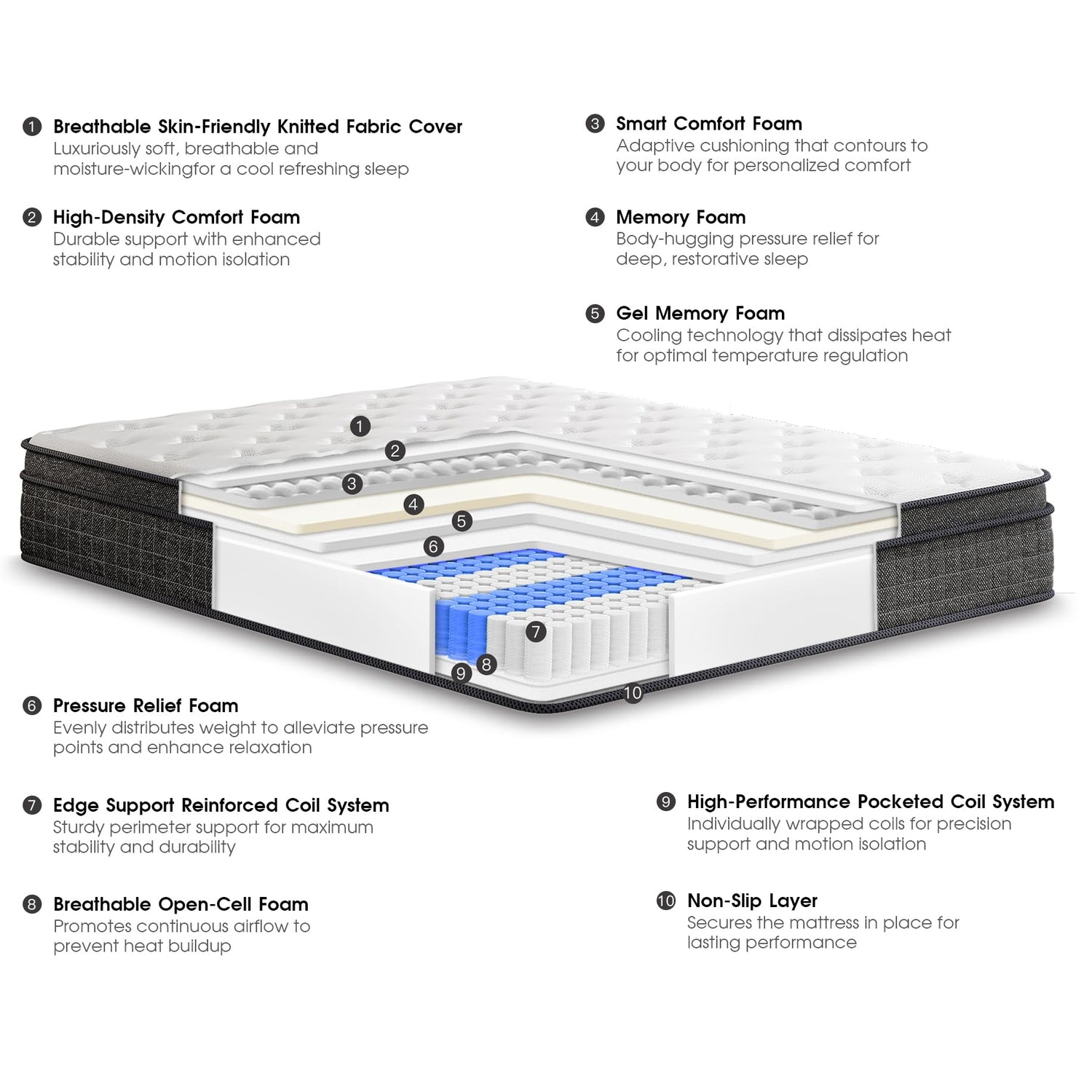 TEENO Twin Mattress, 14 Inch Gel Memory Foam Pocket Coils Springs Hybrid Mattresses, Medium Firm Twin Size Mattress in a Box, CertiPUR-US Certified, Cool & Support Comfort