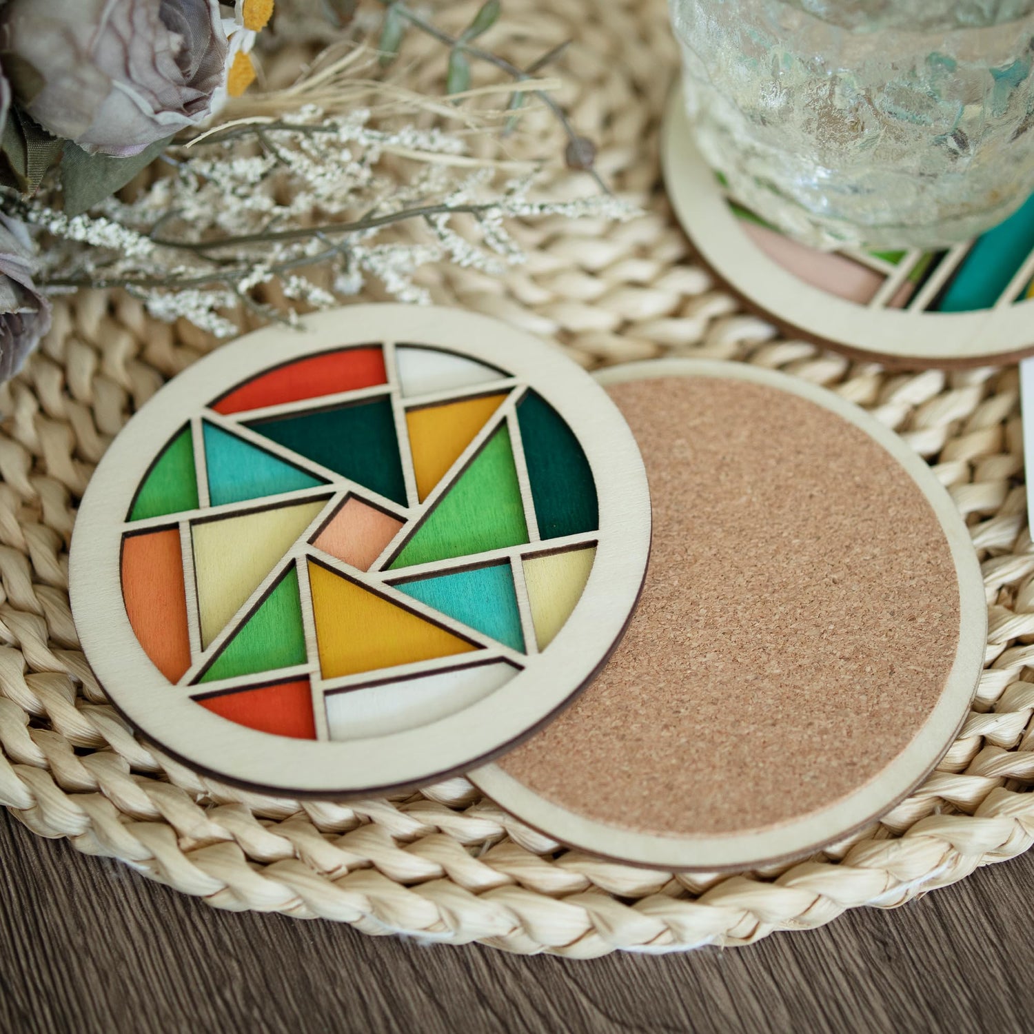 - Unti-Slip Bottom: Temlum coasters kit come with natural cork pads to protect the furniture or tabletops from scratches or scuffs and keep the coaster stay steady in place well — protects your desktop & countertops from heat, doesn't adhere to your glass.