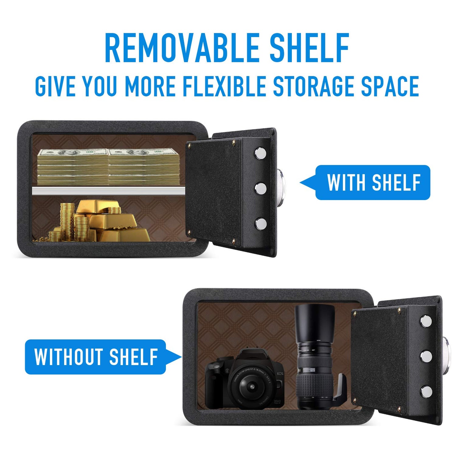 - ✅【STRONGER MATERIAL】: Tenamic safe box is made of the better solid steel. Special ripple coating has been used to the surface for better protection against wear and corrosion. This security safe has a pry-resistant steel door and concealed pry-resistant hinges to offer you complete peace of mind. It ensures that your cabinet safe is stronger and more durable. If necessary, you can fix it on the wall or the ground.