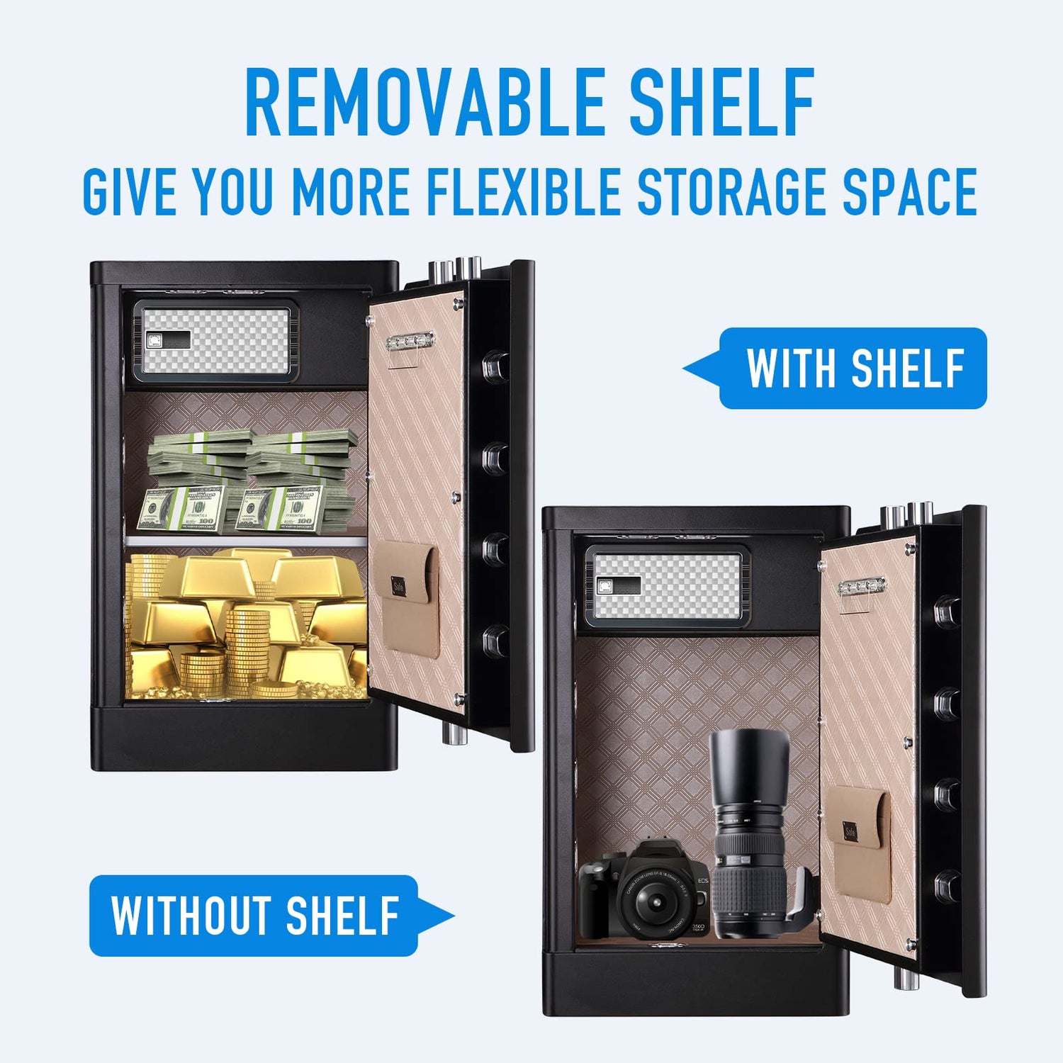 - 【STRONGER MATERIAL】: TENAMIC biometric safe box is made of the better solid steel, the surface has anti-corrosion and anti-wear powder coating. This security safe has a pry-resistant steel door and concealed pry-resistant hinges to offer you complete peace of mind. If necessary, you can fix it on the wall. No one can take away the contents of the safe without your permission. The new version of the safe greatly strengthens the packaging, and equips with foot pads.