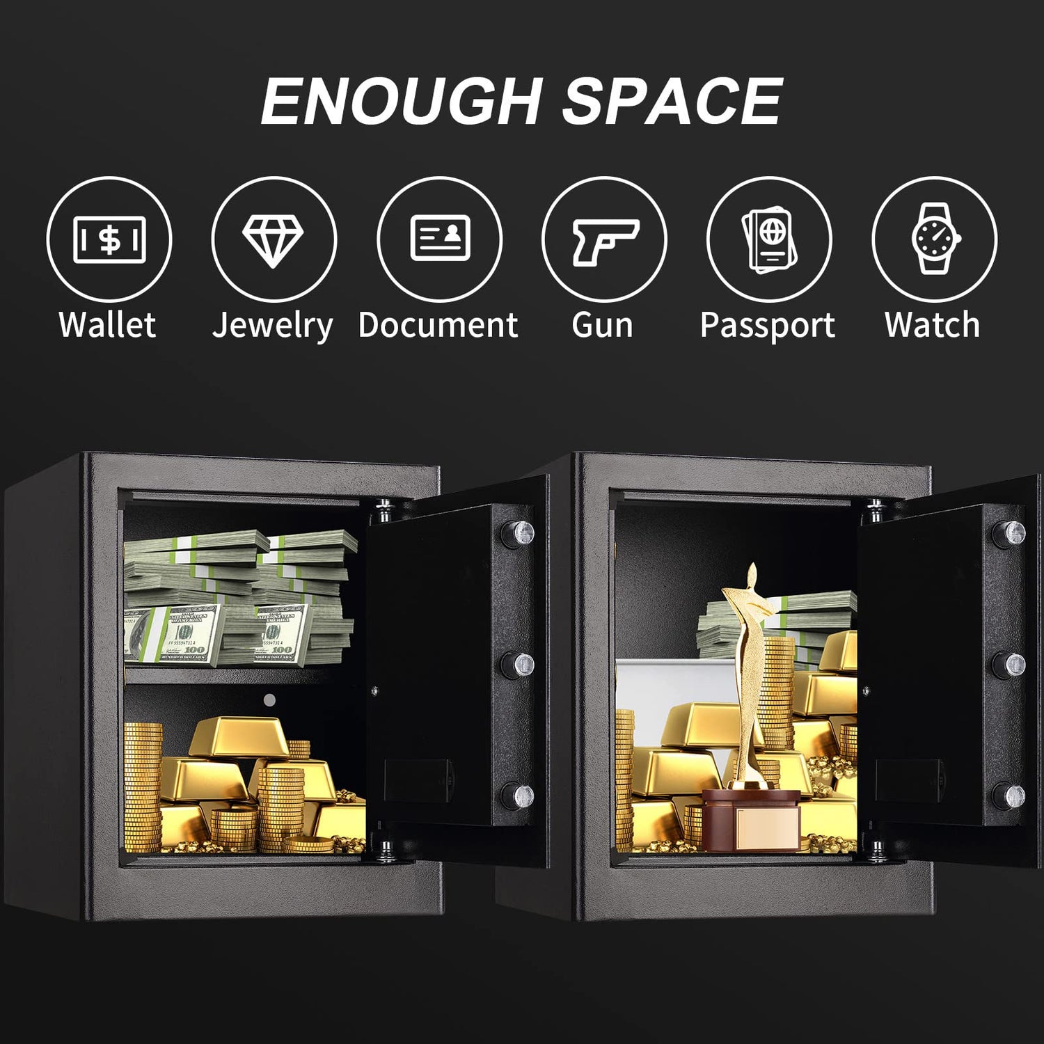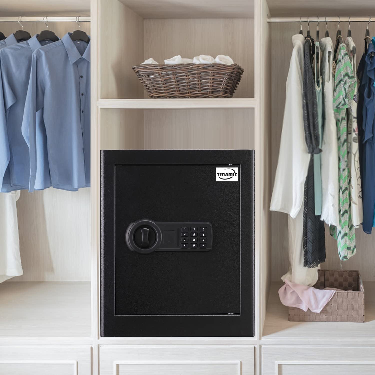 - ✅STRONGER MATERIAL: TENAMIC safe box is made of the better solid steel, the surface has anti-corrosion and anti-wear powder coating. This security safe has a pry-resistant steel door and concealed pry-resistant hinges to offer you complete peace of mind. It ensures that your cabinet safe is stronger and more durable. If necessary, you can fix it on the wall or the ground.