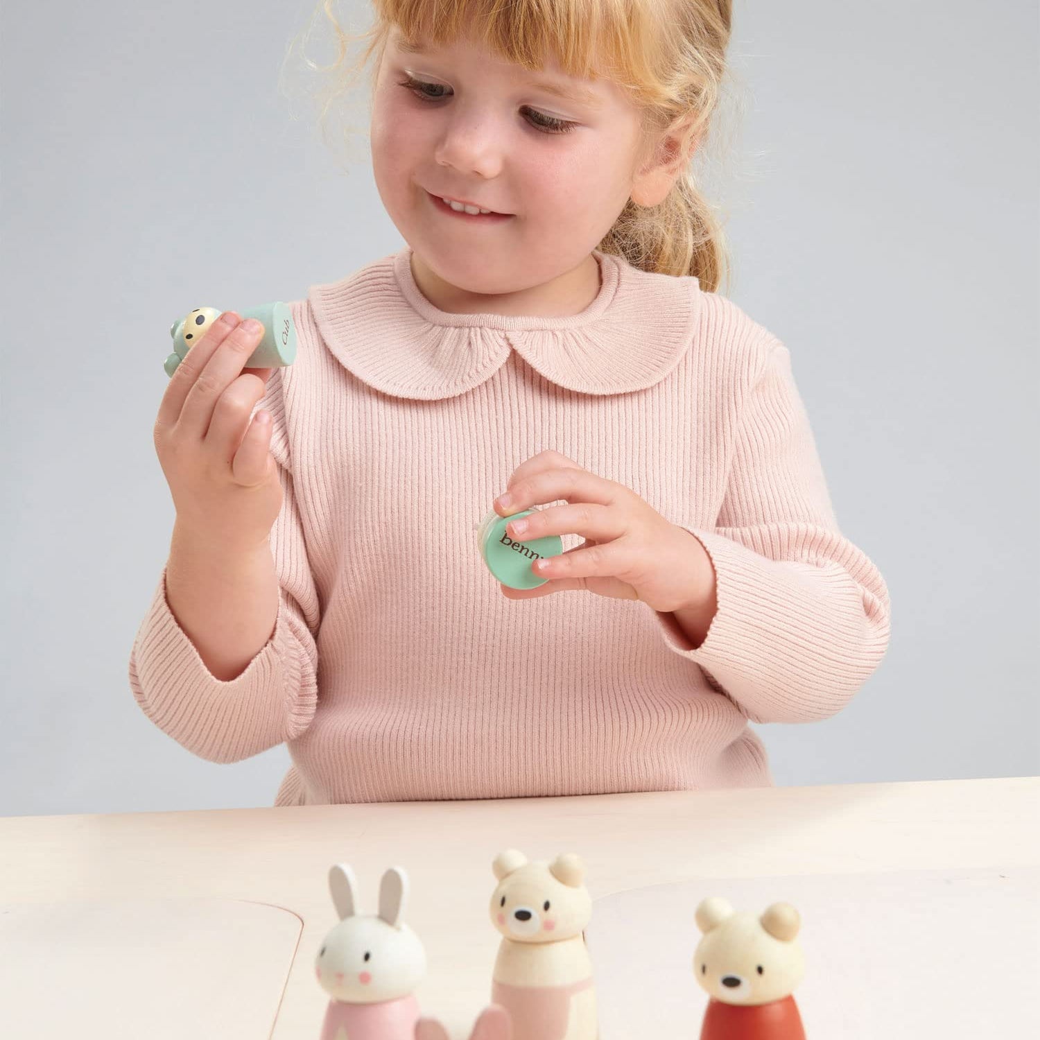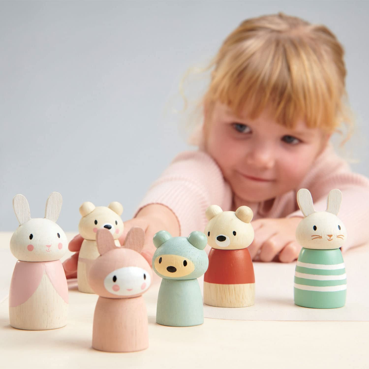 - SUSTAINABLE CRAFTSMANSHIP: Crafted from sustainable rubberwood and colored with gentle non-toxic hues, the Bear Tales family reflects Tender Leaf's commitment to quality and safety. Their contemporary style blends seamlessly into any play environment, making them perfect for playrooms, nurseries, or even as decorative pieces.