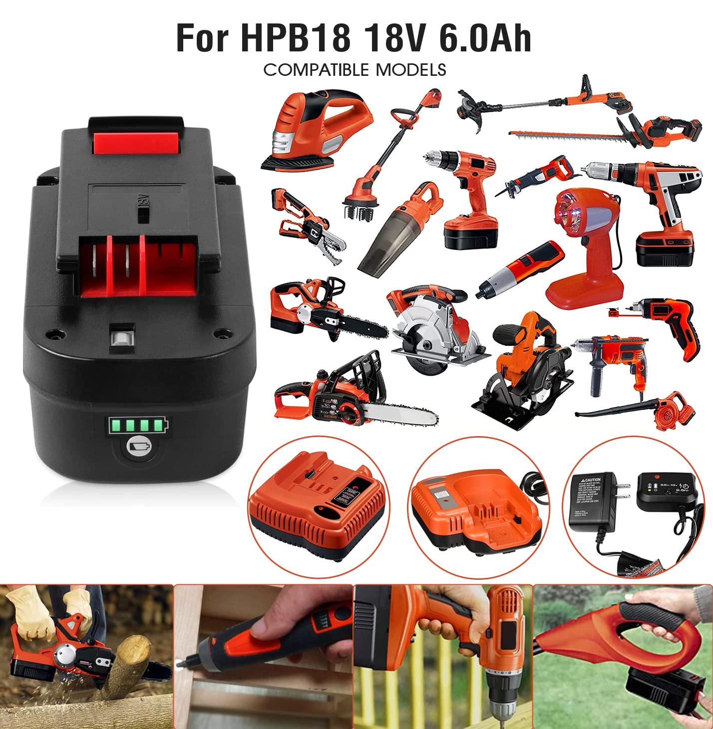 Compatible with Black&Decke18V Tools Model: HP188F2B, HP188F3B, HP188F3K, HP188F4BK, HPD1800, HPD18K-2, HPG1800, HPG18K-2 NHT518, NPP2018, NPT3118, NS118, NST1810,NST2018,NST2018, NST1810, NHT518, NS118, NPP2018, NPT3118,PS182KB,PS18K2,SS18,XTC183BK,etc