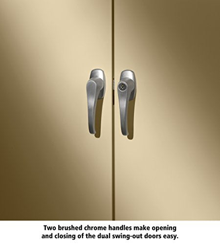 Details: Commercial grade jumbo assembled steel storage cabinet. Fully assembled and ready for immediate use. Super heavy-duty construction built to handle all your storage requirements. Two brushed chrome handles. Right handle uses three-point keyed locking to secure both doors. Storage cabinet is electrostatically painted with a tough, long lasting powder finish to ensure years of lasting beauty.