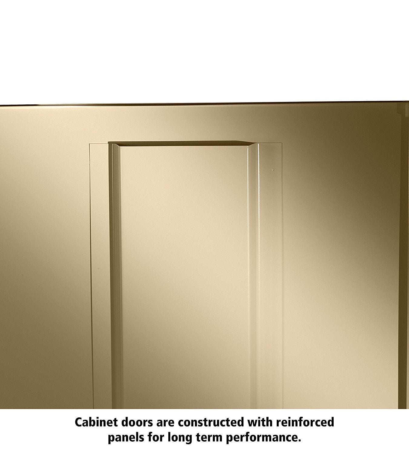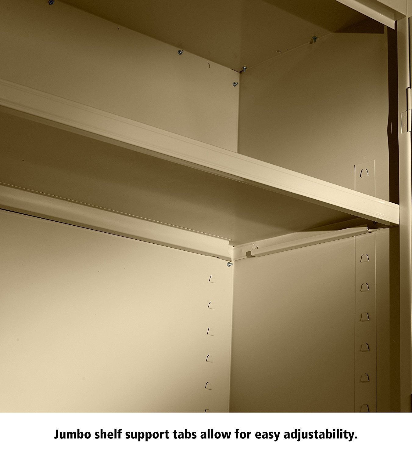 Details: Commercial grade jumbo assembled steel storage cabinet. Fully assembled and ready for immediate use. Super heavy-duty construction built to handle all your storage requirements. Two brushed chrome handles. Right handle uses three-point keyed locking to secure both doors. Storage cabinet is electrostatically painted with a tough, long lasting powder finish to ensure years of lasting beauty.