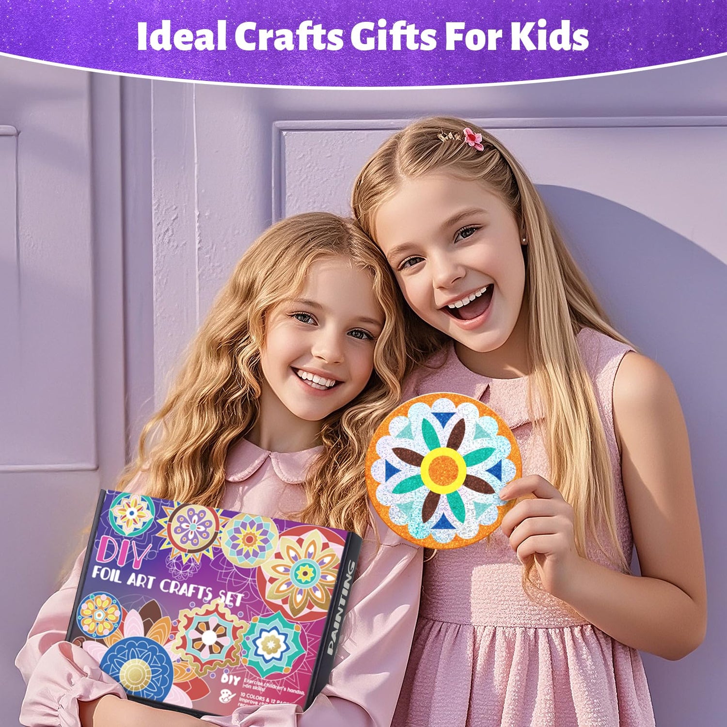 - Foil Art for Kids: Comes with 12 picture canvases, 160 colorful metallic sheets, and 2 plastic sticks. Everything needed to create stunning, reflective designs