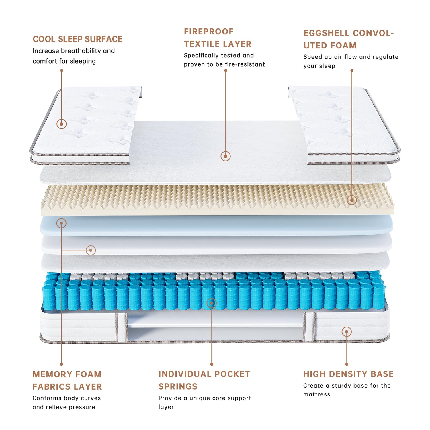 - π«γπ΄πππππ π°ππππππππ & π¬π ππ πΊππππππγ- The twin size mattress features an individual pocket coils spring system that does well in motion insolation. When people or pets sleeping next to you move, you can still enjoy an undisturbed sleep. Reinforced edge support makes sure that sleepers will not slip off. Besides, it has a longer average lifespan than other traditional innerspring hybrid mattress.