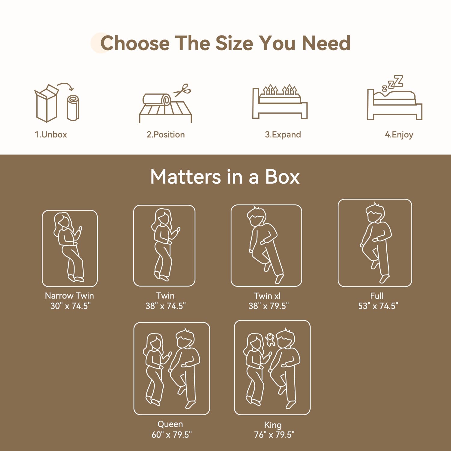 - 【Tightly Packed for Easy Cleaning】TERISTE mattresses are available in a variety of sizes while being packaged in a convenient box for easy transportation and installation. When you need to use it, just open the plastic bag, disassemble the mattress, and wait patiently for 72 hours to allow the mattress to fully expand, and you will get the best mattress. For your convenience, the mattress includes a washable cover that you can remove and wash regularly, ensuring a healthier sleep environment.