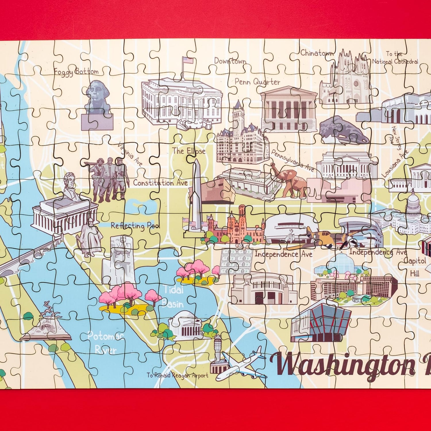 Details: Discover the iconic landmarks of Washington DC with this beautifully illustrated map puzzle. Perfect for both children and adults, this 152-piece wooden jigsaw puzzle combines fun and education, making it an ideal gift for families, history buffs, and puzzle enthusiasts.Made from high-quality wood, this puzzle is durable and can be used over and over again. The puzzle pieces are precision-cut to ensure a snug fit, making it easy to assemble. Once completed, the puzzle measures approximately 15 inches by 10 inches, making it the perfect size for display.This Washington DC Illustrated Map Wooden Jigsaw Puzzle makes a fantastic gift for puzzle enthusiasts, Washington DC lovers, and anyone who enjoys a bit of creative relaxation. It's perfect for birthdays, holidays, or as a delightful souvenir to remember your visit to the city. Bring the enchantment of Washington DC into your life with this unique and captivating wooden jigsaw puzzle.Order yours today and start exploring Washington DC from the comfort of your own home!