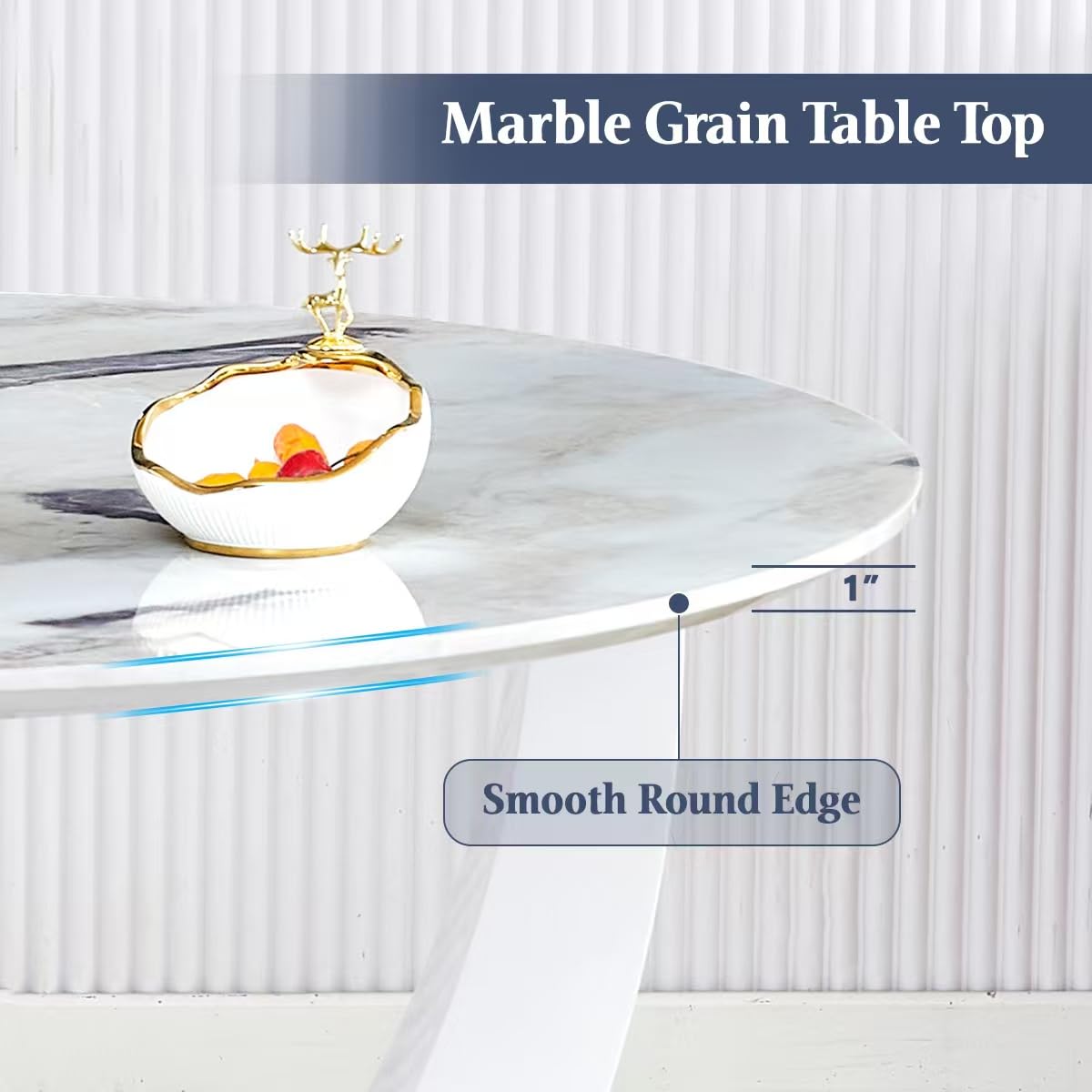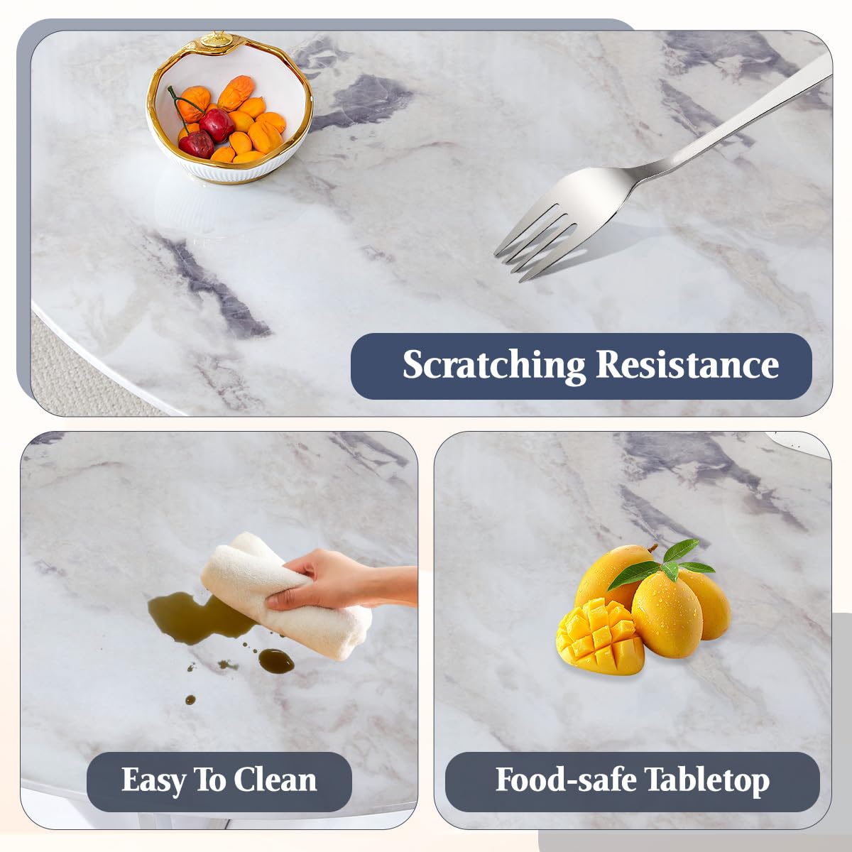 - Faux Marble Kitchen Table With 4 Chairs:The white round dining table set for 4 crafted with a scratch-resistant marble grain finish, this dining table wipes clean easily and is food-grade safe. No worries about spills from coffee, wine, or oil during family meals or small gatherings