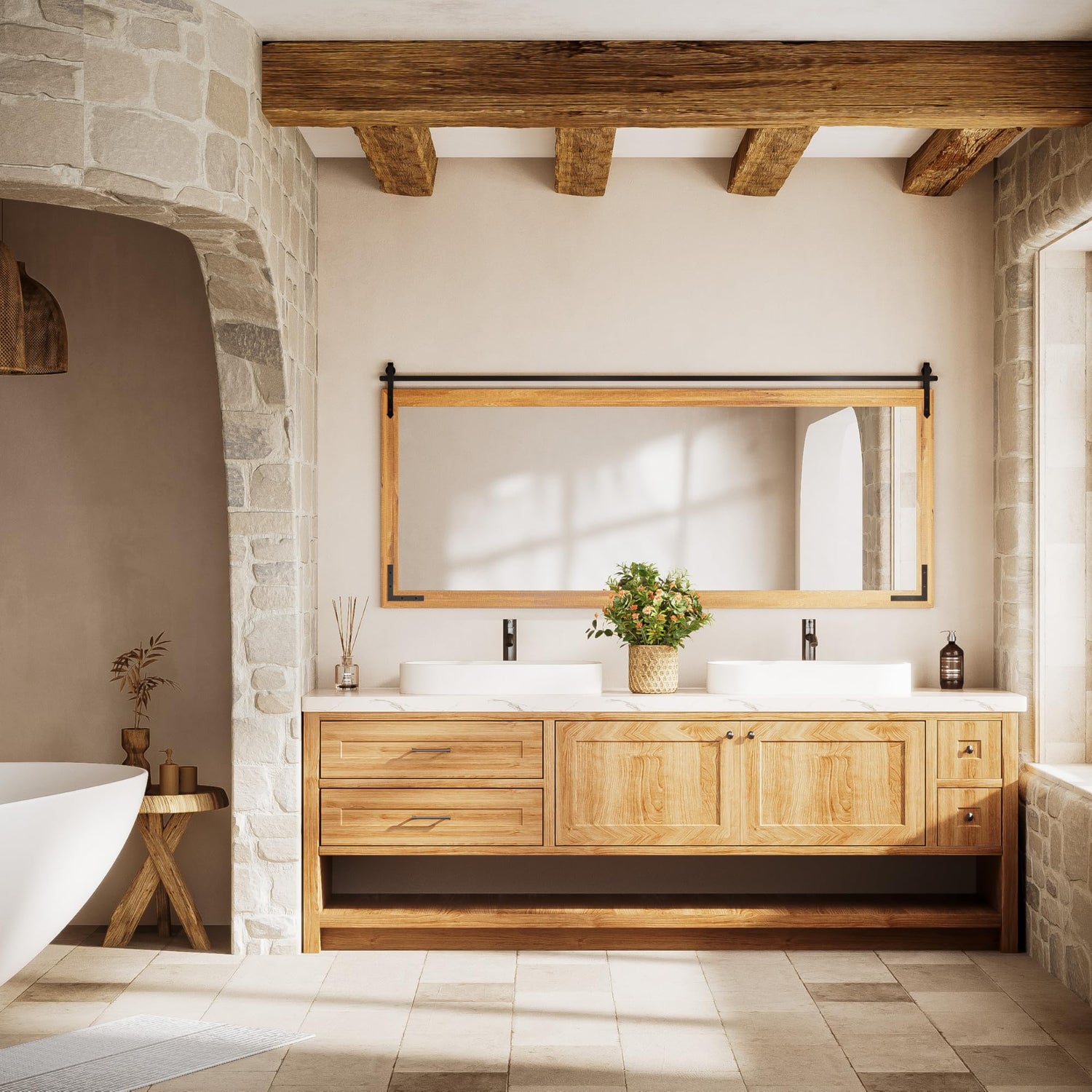 - 🌿【Waterproof Varnish Coating for Lasting Protection】🌿This 72 x 32 inch rustic farmhouse bathroom mirror is coated with waterproof varnish, providing lasting protection against moisture and humidity. The moisture-resistant coating prevents the frame from warping or peeling, ensuring long-lasting durability, maintaining its beauty over time, and making it easy to clean.