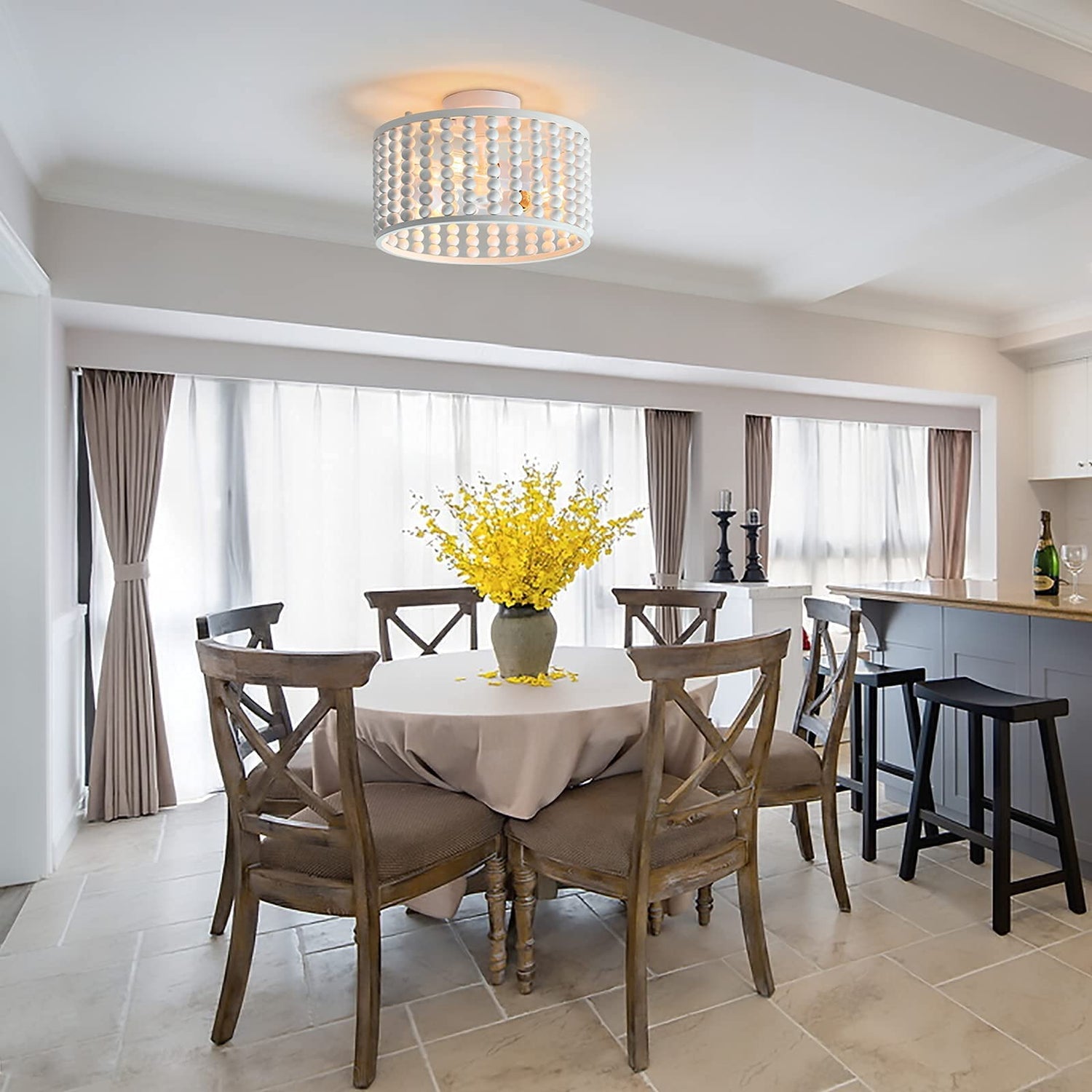 tewei Wood Bead Chandelier, Semi Flush Mount Boho Nursery Ceiling Light Fixture Rustic 3 Lights Chandelier Farmhouse E26 for Kitchen Bedroom Living Dining Room White