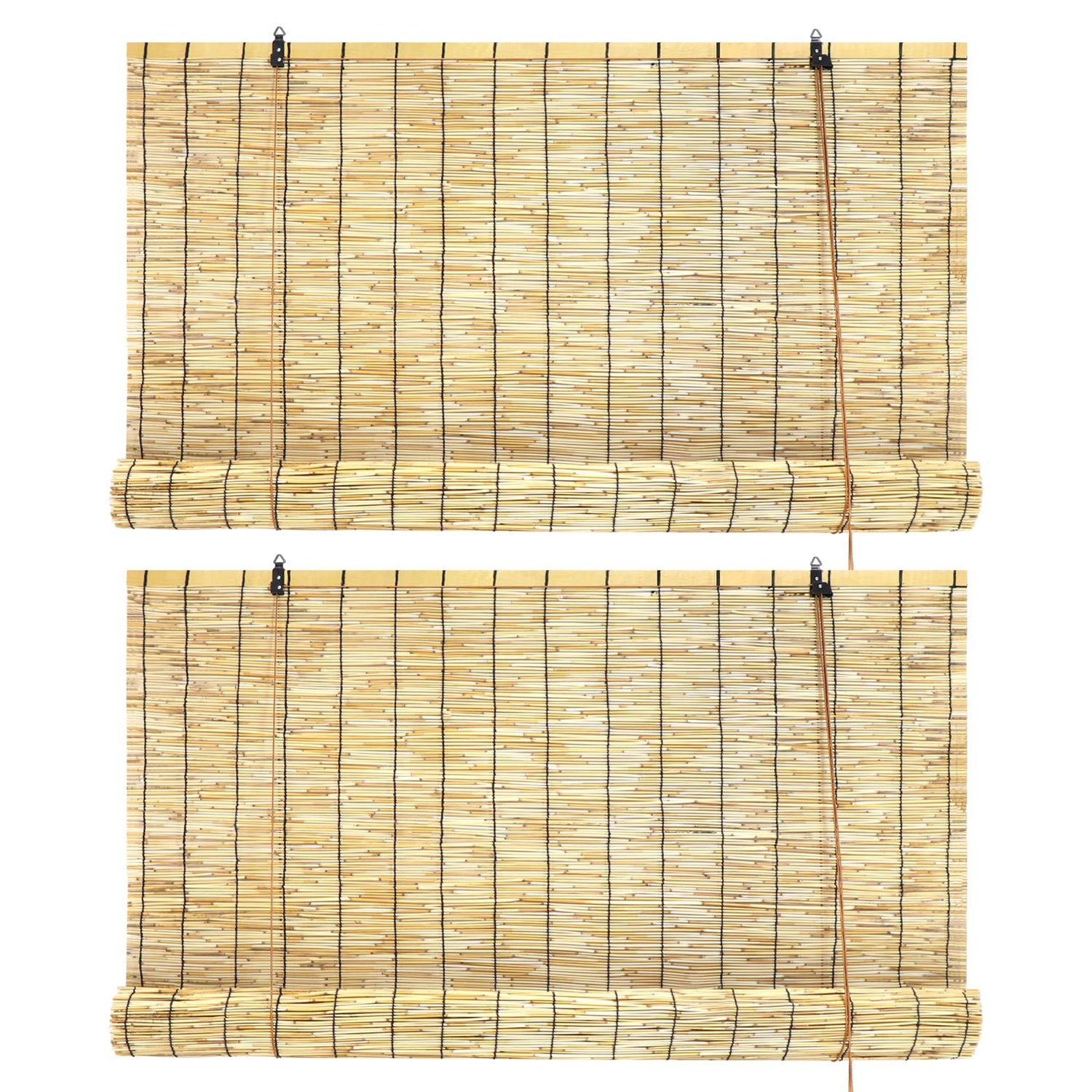 Bamboo Roll-Up Reed Shades - 47" W x 71" H Retro Outdoor Blinds (2 Pack)