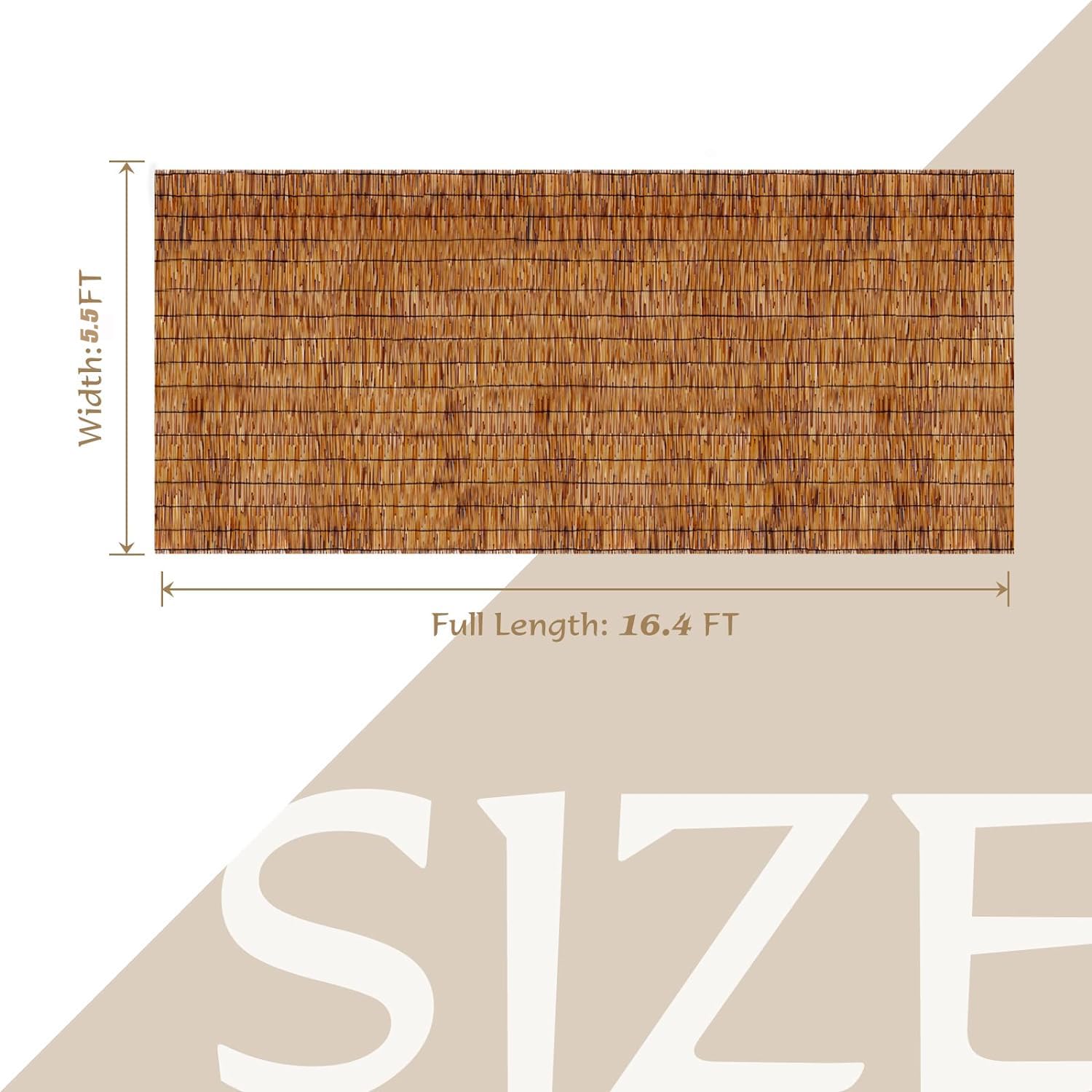 Tgzwme Natural Reed Fencing Rolls,5.5FT X 16.4FT Reed Screen Curtain Balcony Reed Fence Bamboo Screen Fencing for Outdoor Backyard Patio(Brown)