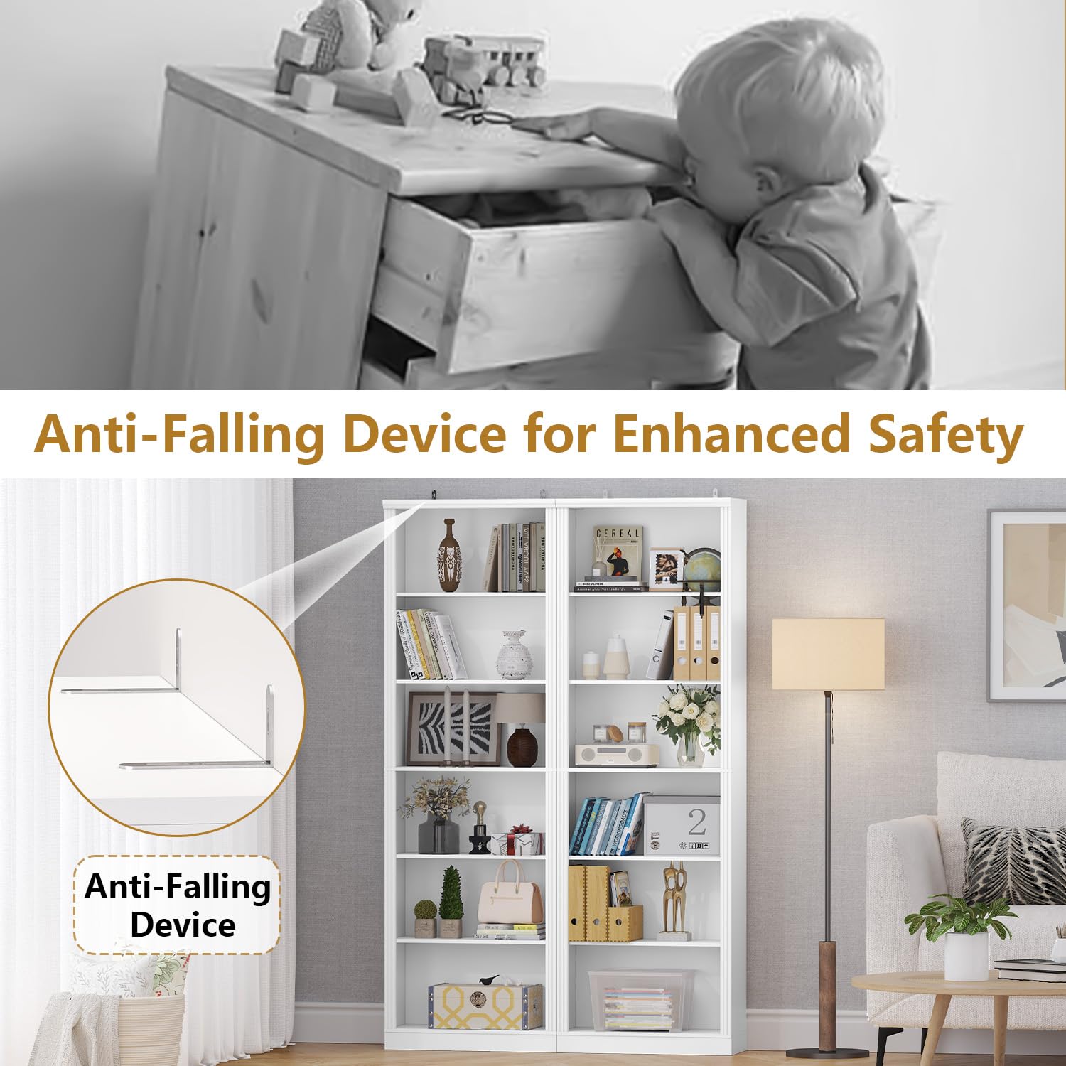 Thacuok 75" Tall Bookshelf & Bookcase, 6-Tier Adjustable Storage Shelves, Book Shelf with Anti-Tipping Device, Floor Standing Modern Display Rack for Living Room, Bedroom, Office, White