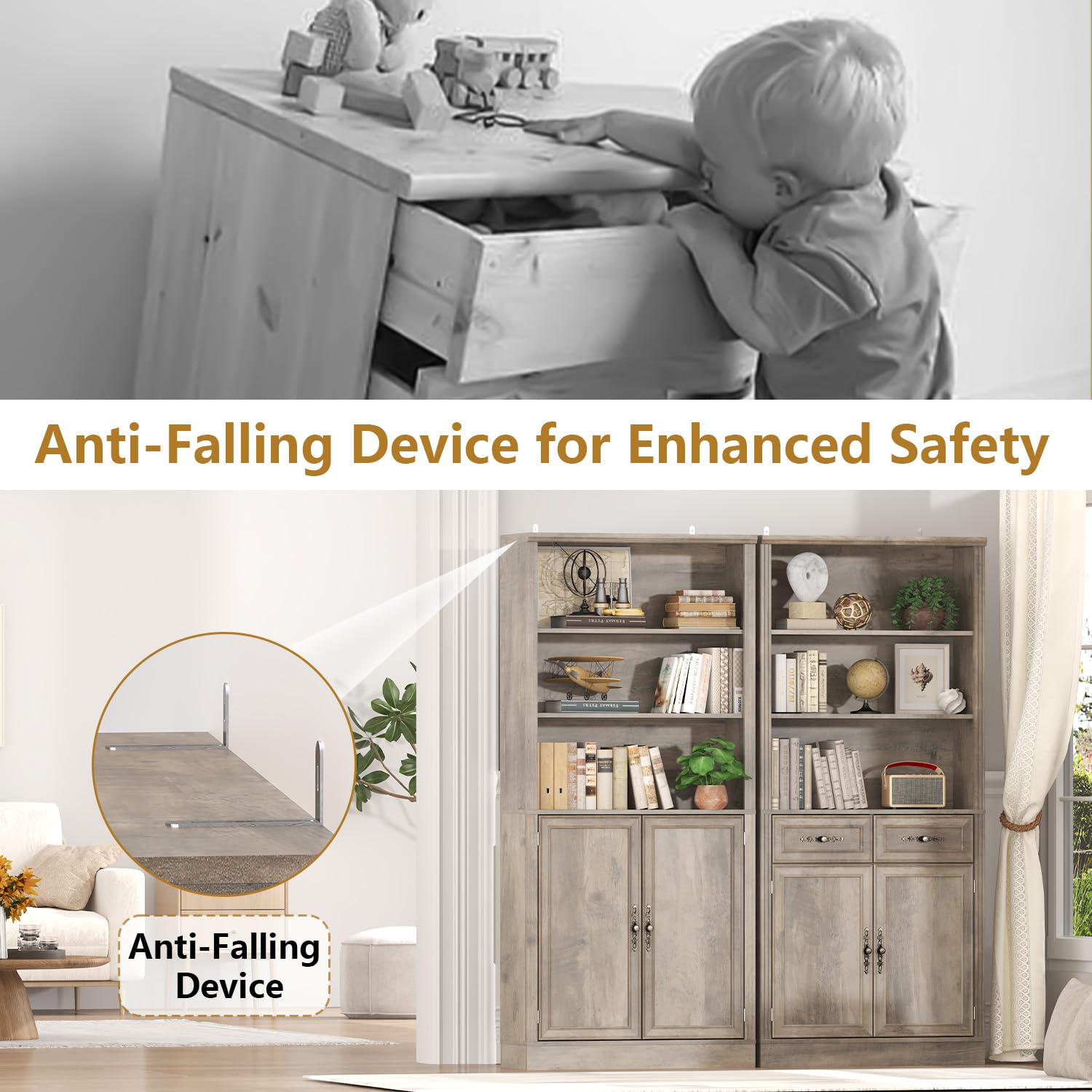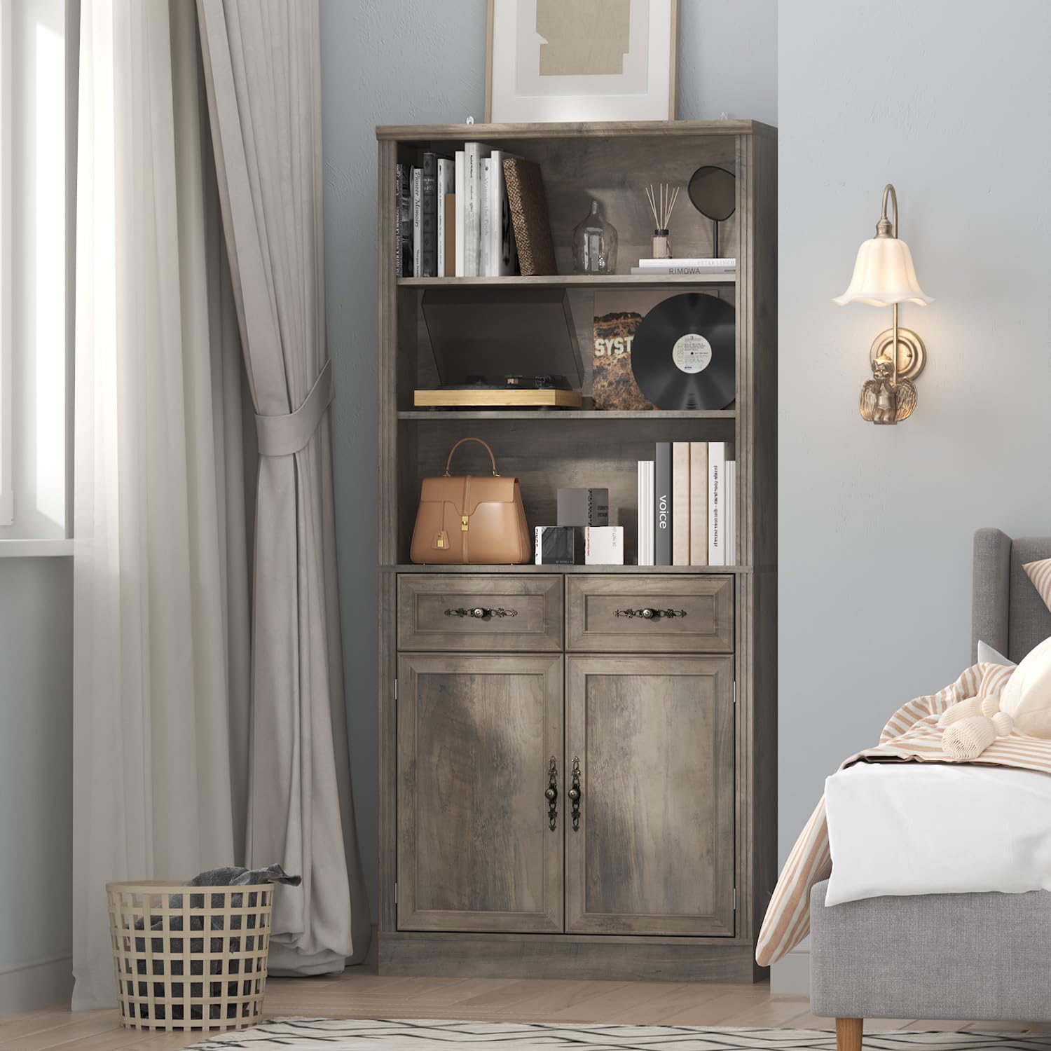 - Versatile Storage Solution: This bookcase features a combination of open shelves, cabinet doors, and drawers—perfect for organizing books, decorative items, or everyday essentials while keeping clutter out of sight. Dimensions: 71.4" H × 31.5" W × 12.62" D.