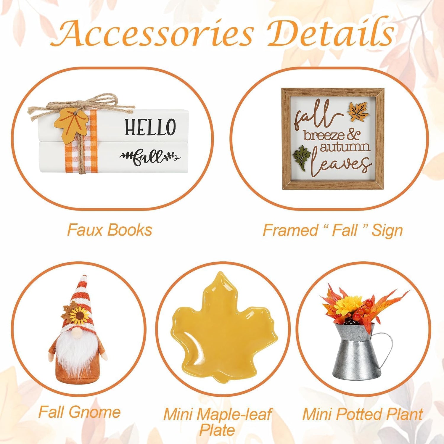 - Safe and Reliable Material:Our 8 pieces fall tiered tray decors are made of quality material.They are crafted from sturdy, non-toxic, and eco-friendly components, ensuring they are safe for both family use and the environment. The materials used are durable, capable of withstanding the wear and tear of daily life, making them a long-lasting addition to your home decor.