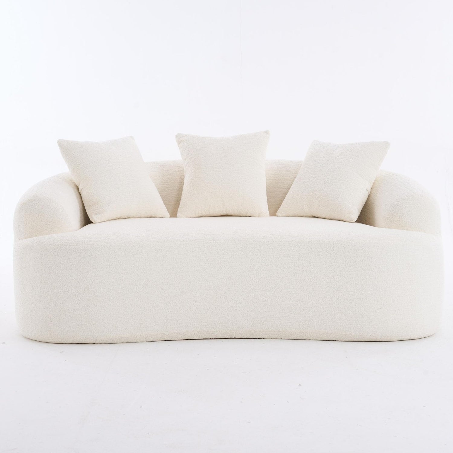 Thctvous 65” Beige Curved Loveseat Sofa with Round Armrest, Compression Couch with 3 Pillows, Cream Couch for Small Space, Living Room, Bedroom, Memory Foam, Chenille, No Assembly (Beige, 65")