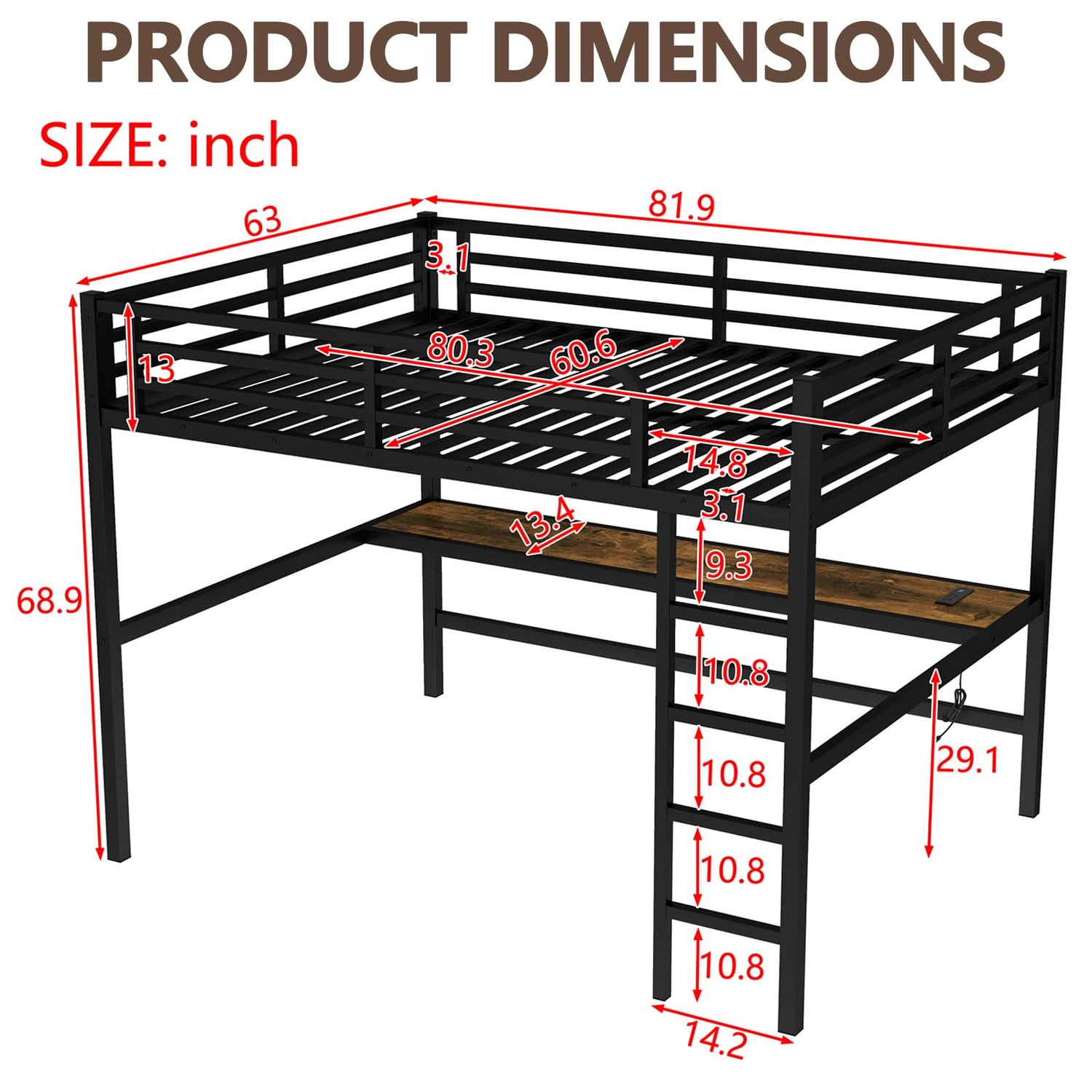 Details: Queen size Loft Bed with Desk - Space-Saving Solution for Modern Living