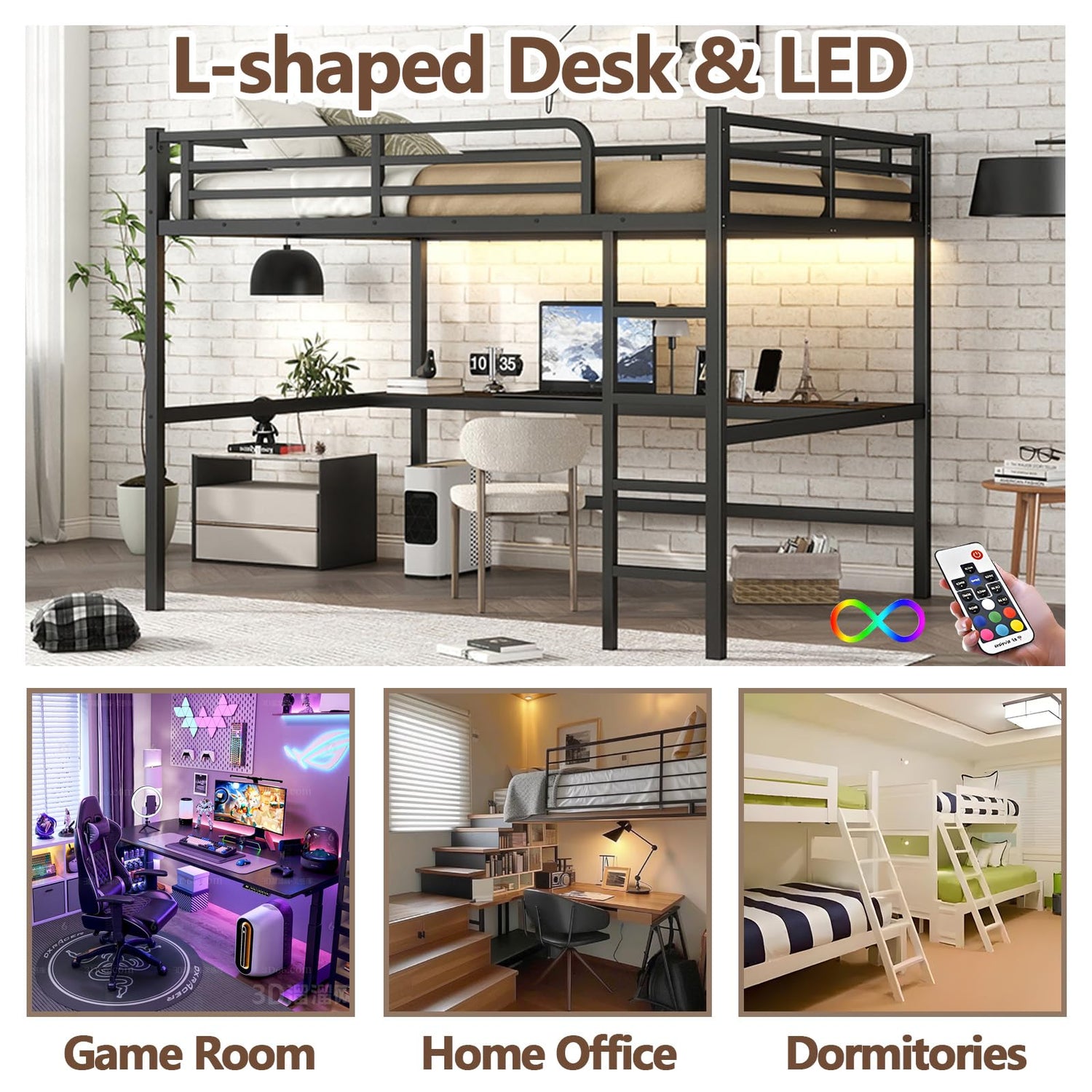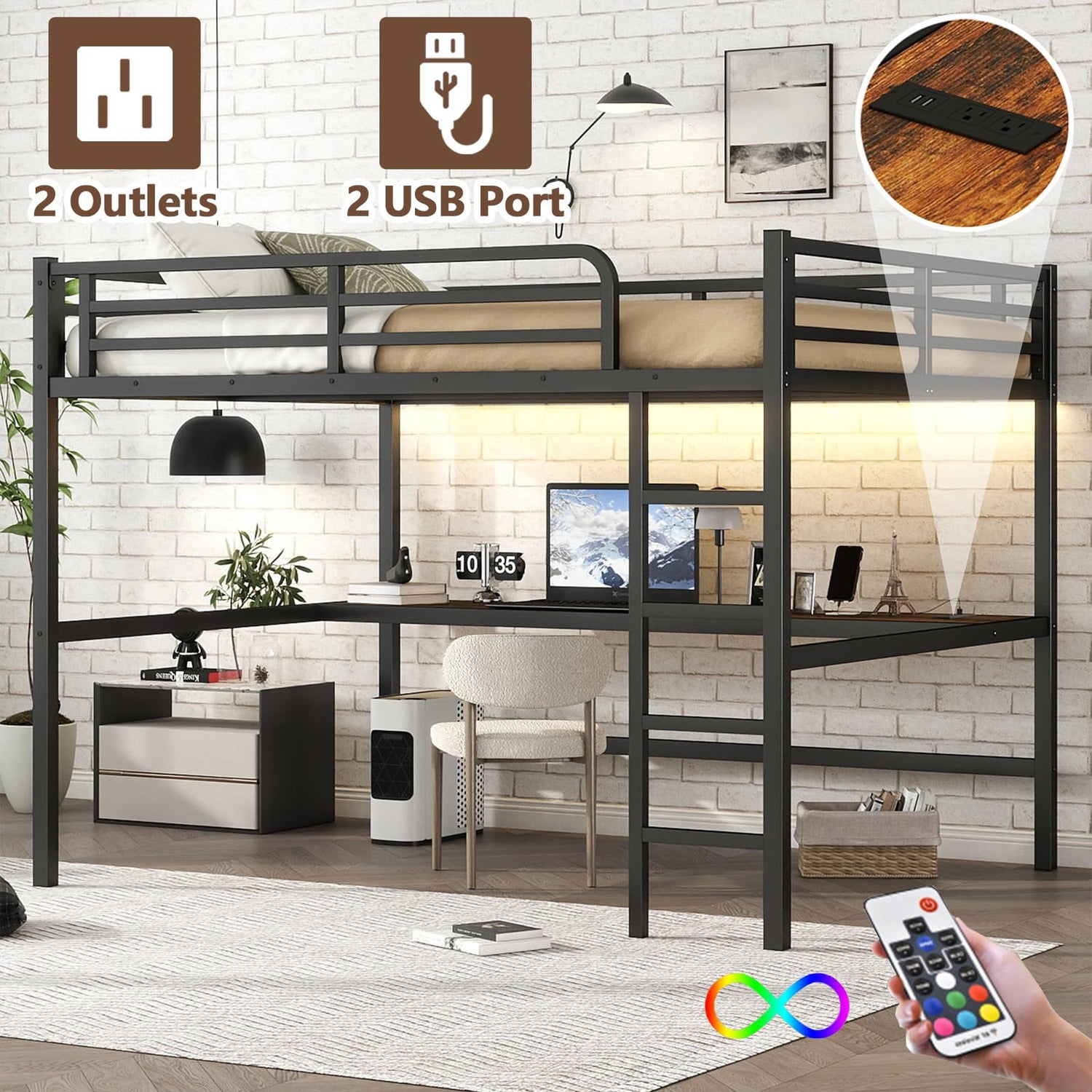 2.Integrated Workspace Spacious desk provides room for: Studying or working / Gaming setup / Reading area Convenient USB charging port keeps devices powered LED strip lighting offers soft illumination for nighttime use Space-efficient footprint fits comfortably in small bedrooms Neutral color scheme complements various decor styles
