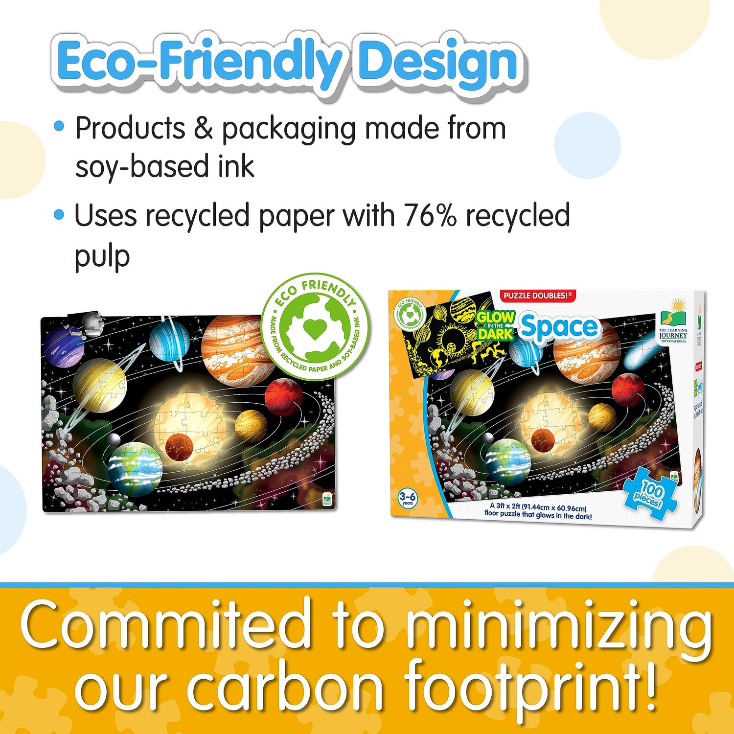 The Learning Journey Puzzle Doubles Glow in the Dark - Space - 100 Piece Glow in the Dark Puzzle, Space Puzzles For Kids Ages 4-8, Solar System Puzzle For Kids, Award Winning Educational Toys