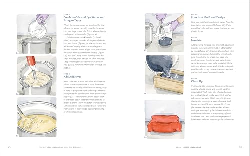 Soap making basics―Learn all you need to know before making your first batch of soap, like the science behind what happens when you combine ingredients, helpful soap making terminology, and lists of all the supplies you'll need (including lye). This section also provides instructions for using natural colors and scents to make your soaps look and smell beautiful. Step-by-step tutorials―Dive into cold-process soap making and unlock your artistic abilities using simple guides for mixing, melting, and pouring, as well as instructions for creating silky smooth, layered, and embossed soaps. 55+ all-natural soap recipes―This book will teach you to make a variety of soaps infused with natural herbs, oils, and milks, including a creamy Gentle Baby Soap, an antioxidant-rich Avocado and Shea Face Bar with Aloe, and a nourishing Goat Milk and Honey Shampoo Bar.