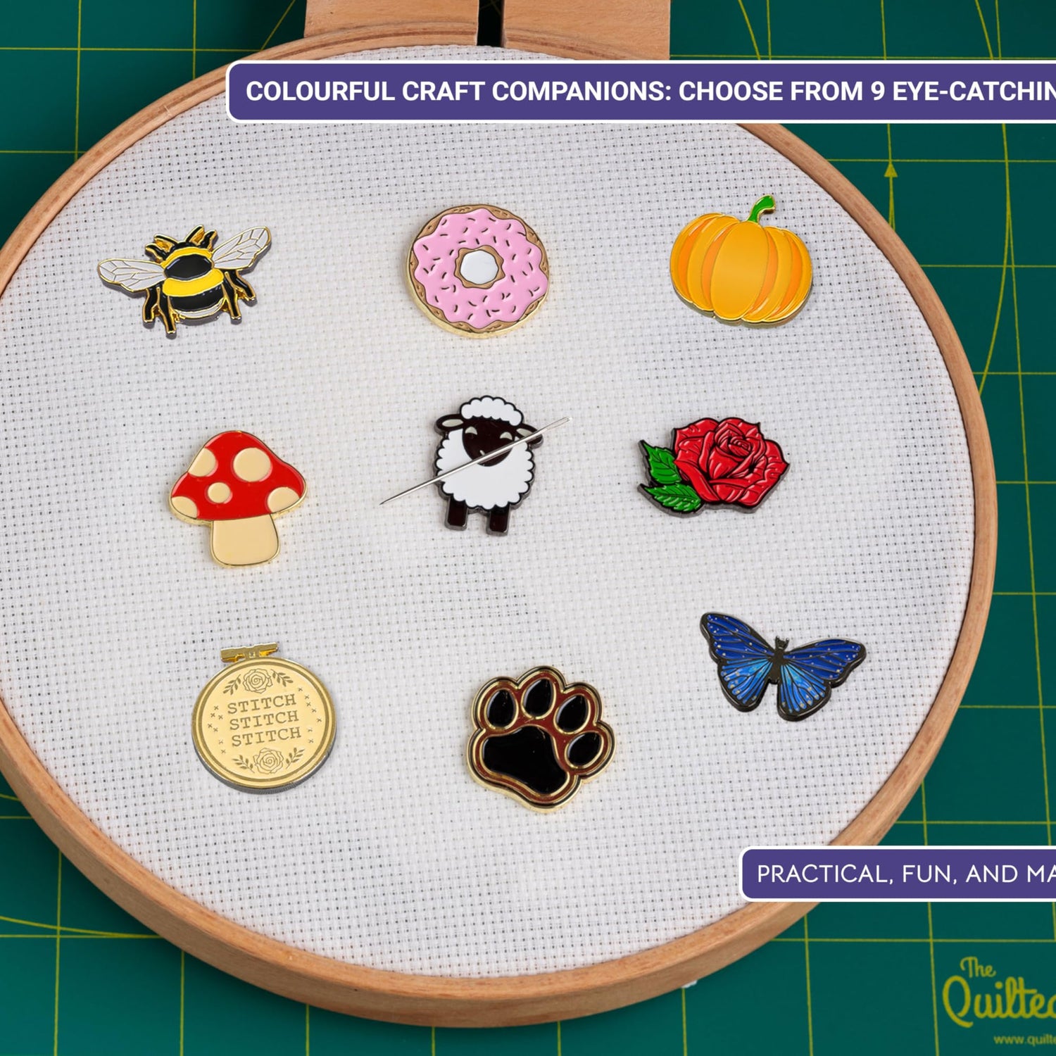 - We have a range of five stylish designs to choose from - from red roses, to delicious donuts! Our needle minders are sure to make your sewing kit stand out.