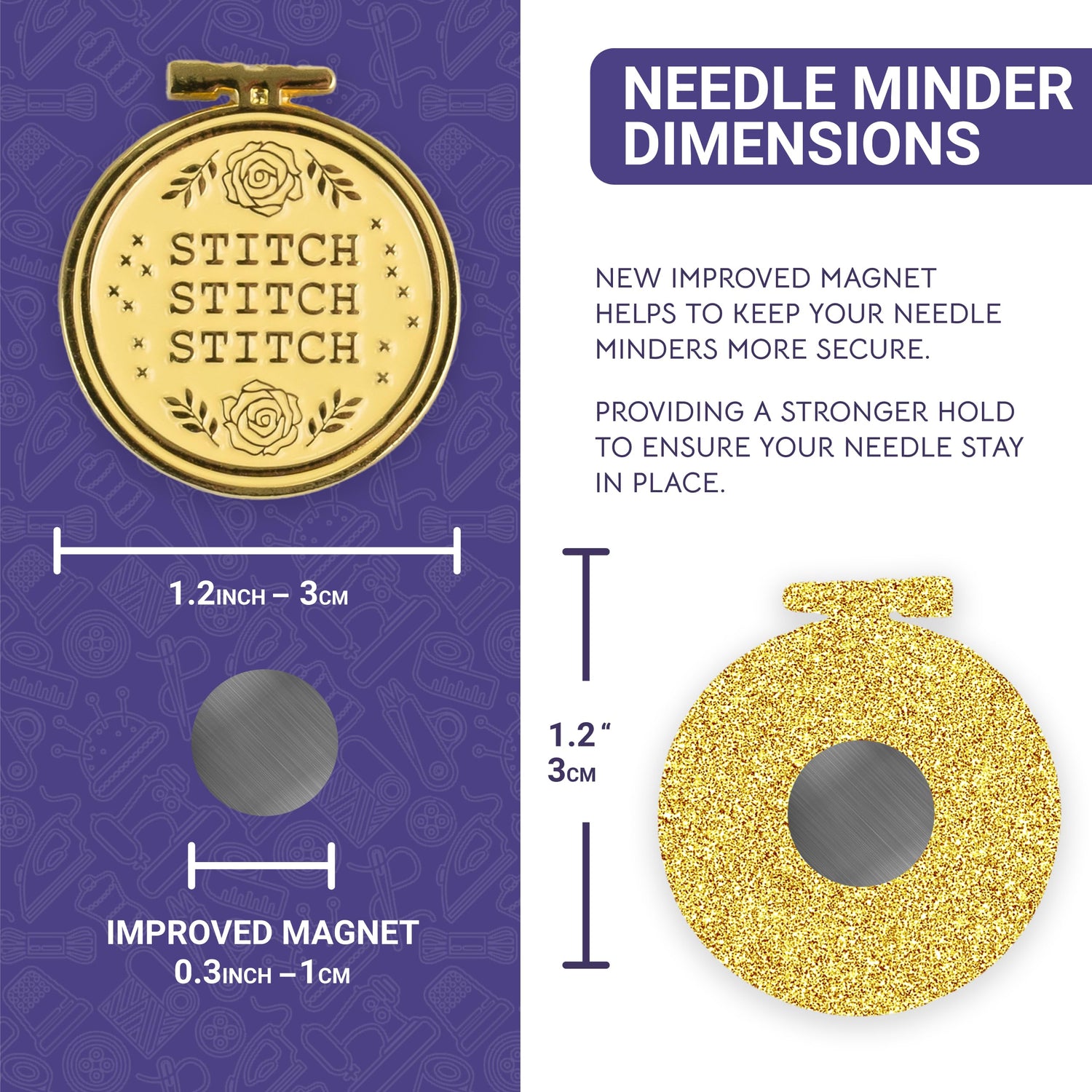 - Featuring our newly redesigned larger magnet with over twice the strength of our previous generation - whether changing thread colours, or simply taking a break - This needle minder stays exactly where you placed it.