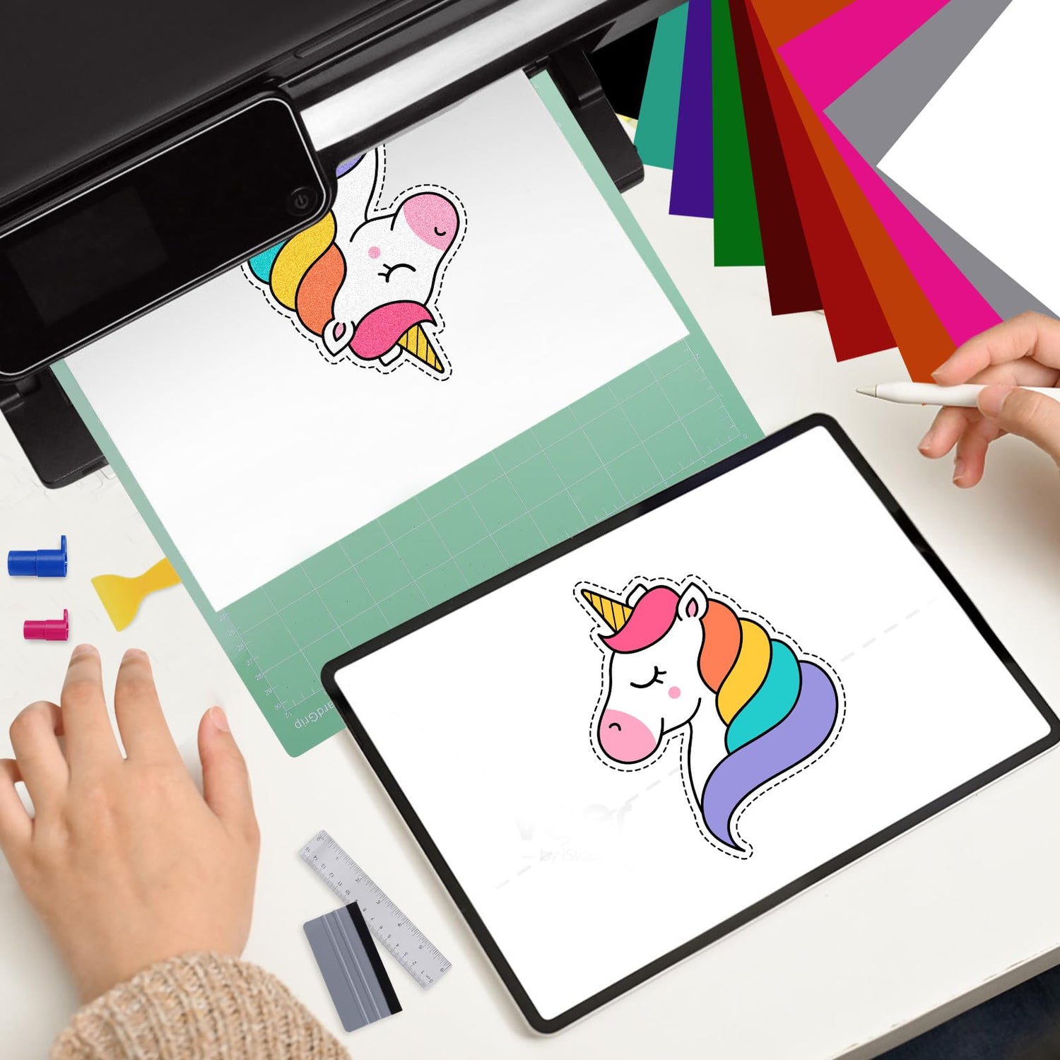 • The vinyl sheets and heat transfer vinyl are available in a variety of colors and finishes, allowing you to add vibrant and unique designs to your projects. Whether you're making personalized gifts, home decor, or clothing, these materials are sure to add a professional touch to your creations.