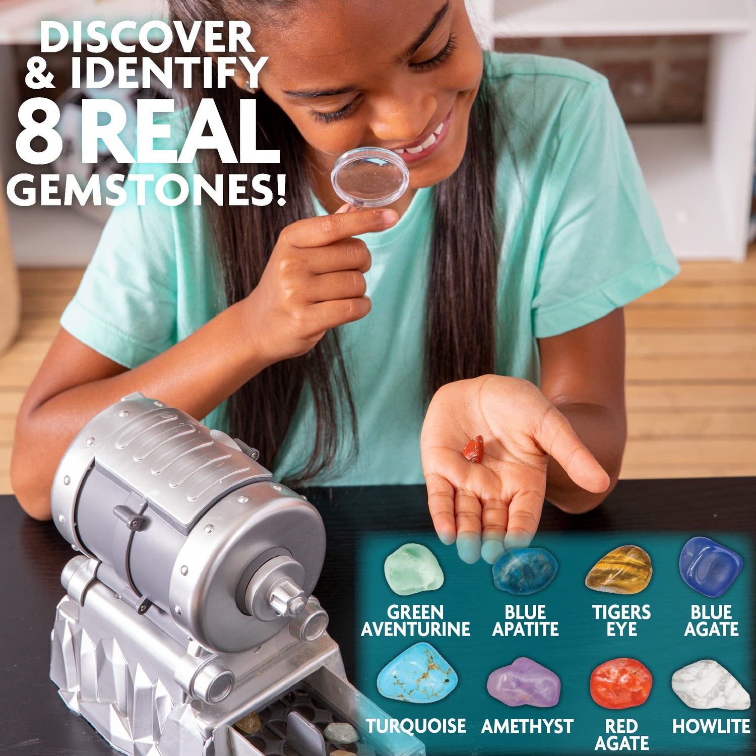 - POLISH & INDENTIFY 8 REAL GEMSTONES: Discover how all-natural, collectible gems go from gritty to gorgeous when you tumble away the rough exterior to reveal a smooth, shiny gemstone!