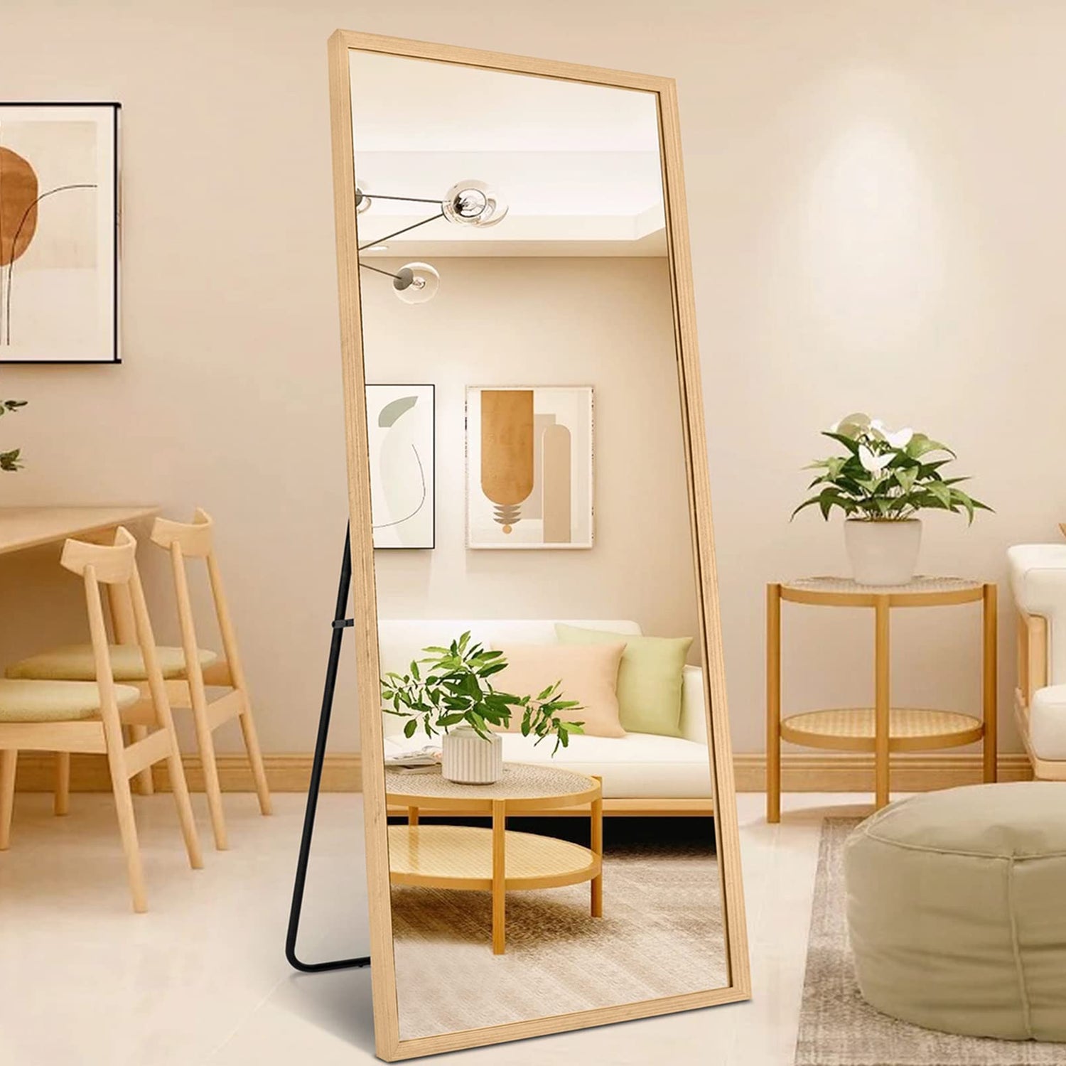- ★【 Solid Wood Frame】The material of the frame is pine wood. The frame of the mirror is very thin,only 0.87” breadth and 1.38” thickness; beveled frame, solid wood texture layer,simple,elegant and graceful. This floor mirror will become must-have deco in your home.