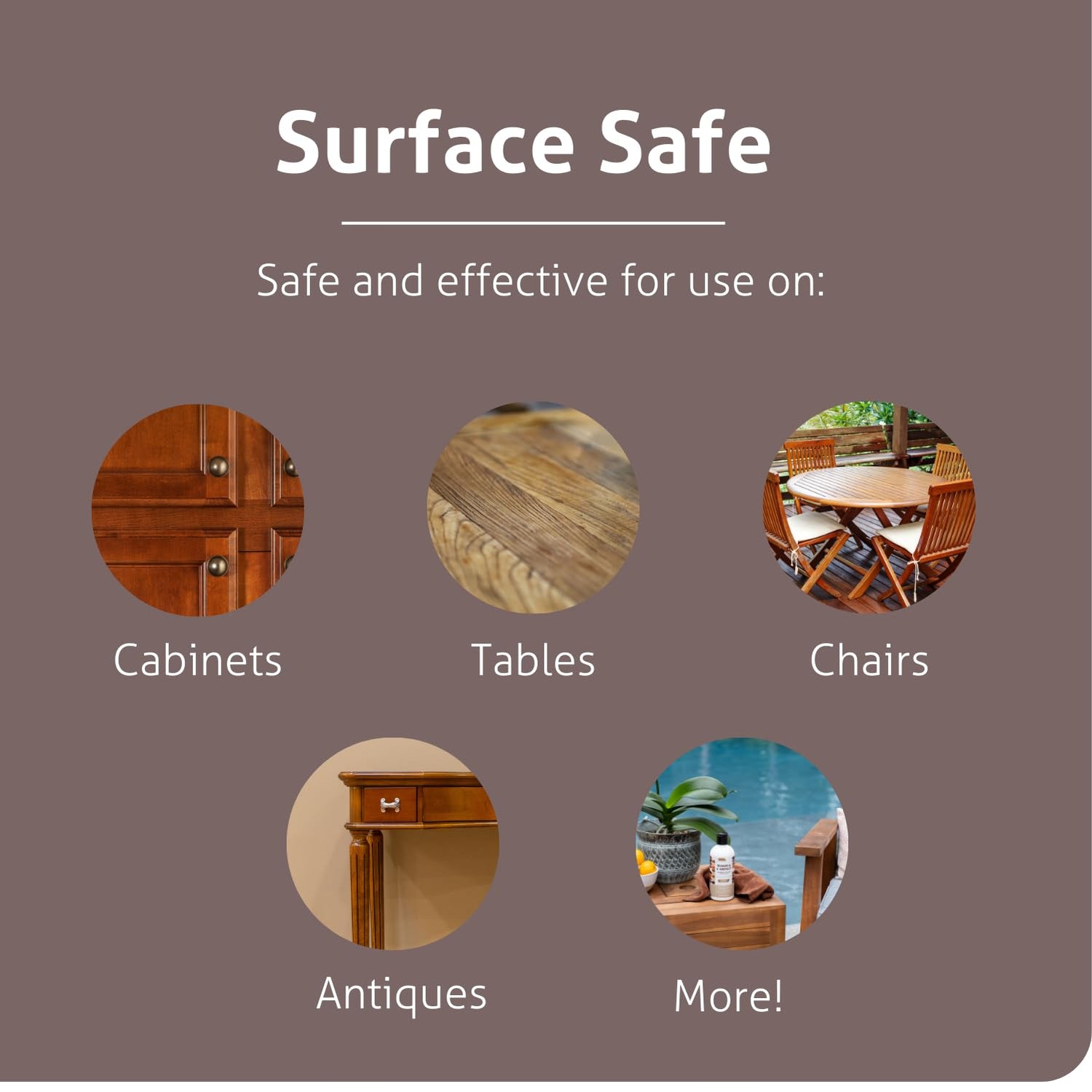 - VERSATILE USE: Safe wood furniture polish for cabinets, antiques, teak, tables, chairs, and more.