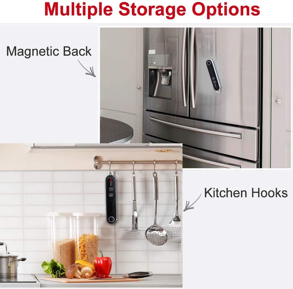 - Convenient storage: Digital thermometer for cooking with foldaway probe, features a magnetic back to allow you to easily attach to refrigerator or any metal surface; a hanging hole for your kitchen hooks or a lanyard