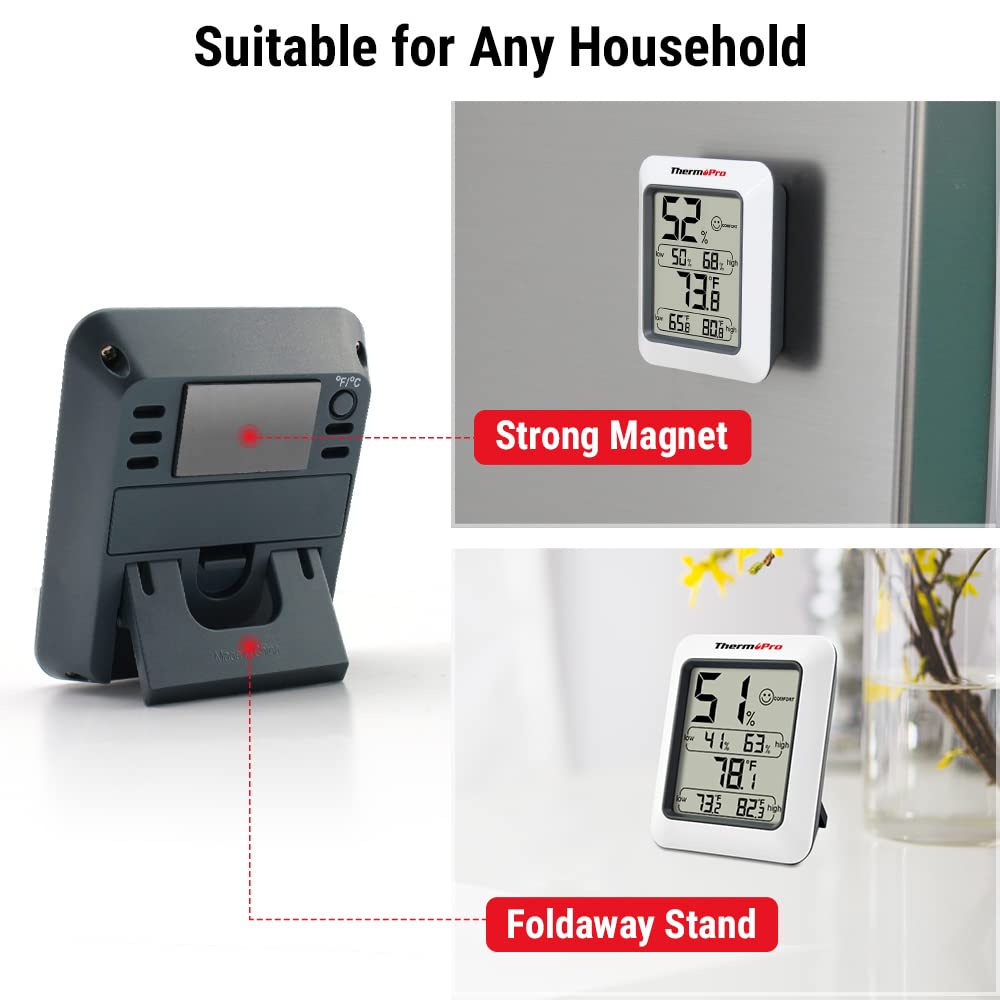 - Healthier Home & Environment: This thermometer hygrometer with temperature and humidity monitor ensures proper indoor humidity that achieves important health benefits for skin and allergen; Can also serve as a refrigerator thermometer, freezer thermometer, reptile thermometer, soil thermometer, humidor hygrometer, cigar hygrometer, and more