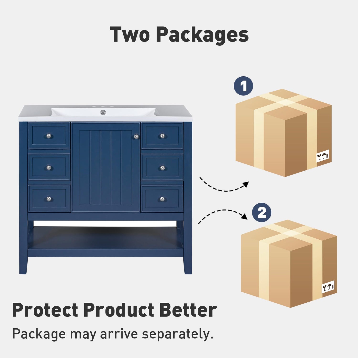 - Assembly Required - This bathroom vanity, needs assembly, has two packs, one for the sink and the other for the cabinet. All the hardware(screws, metal door hinges and handles, drawer slides, anti-toppling device etc.) and instruction manual are provided. You can install it according to the instruction easily.