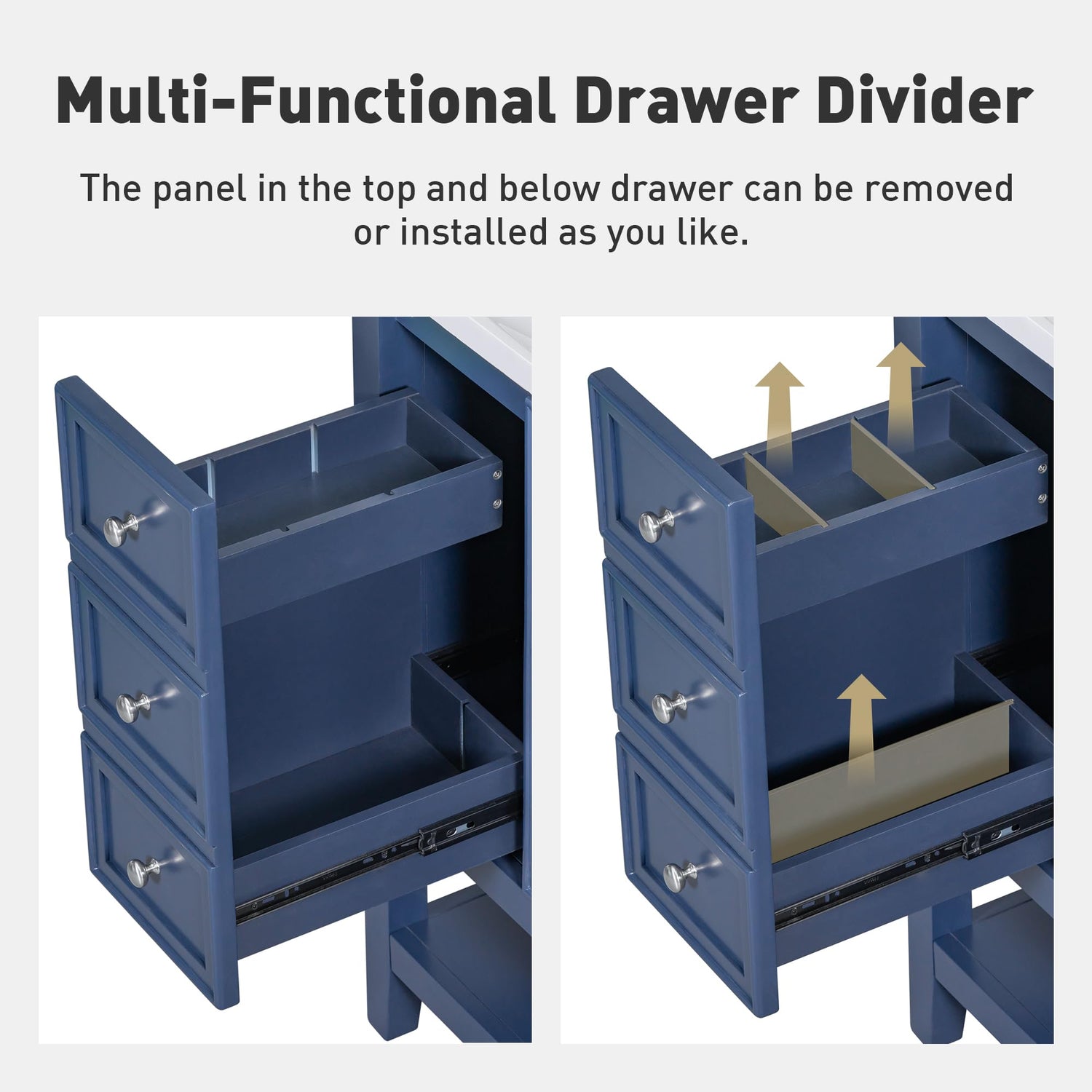 - Multi-Functional Drawer Divider - The panels in the left drawers can be removed or installed to different place as you like. All in all, the reasonable distribution of the whole vanity offers variety functions to meet the different requirements in daily life.