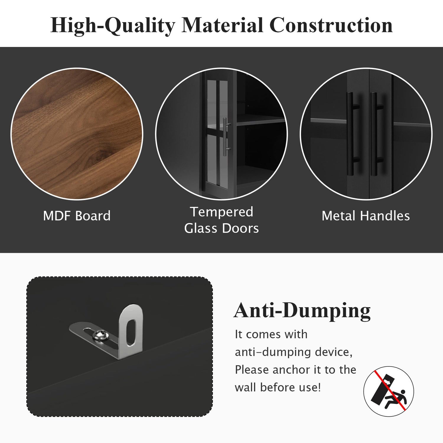 - High-quality Material: The entire piece is crafted from high-quality MDF, metal handles and tempered glass doors, ensuring that the TV cabinet remains sturdy and resistant to wear and tear over time.